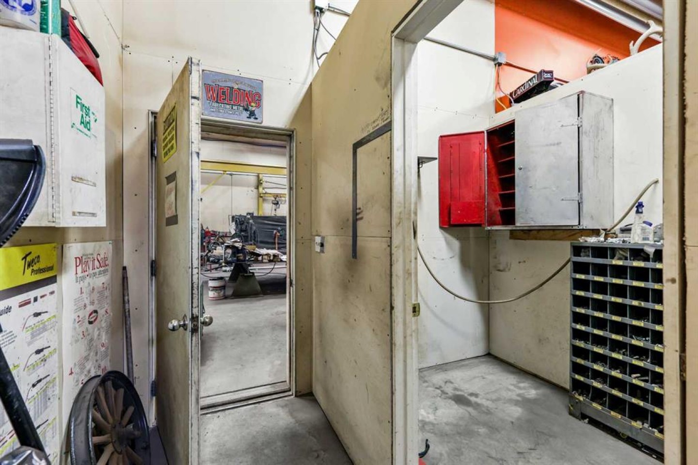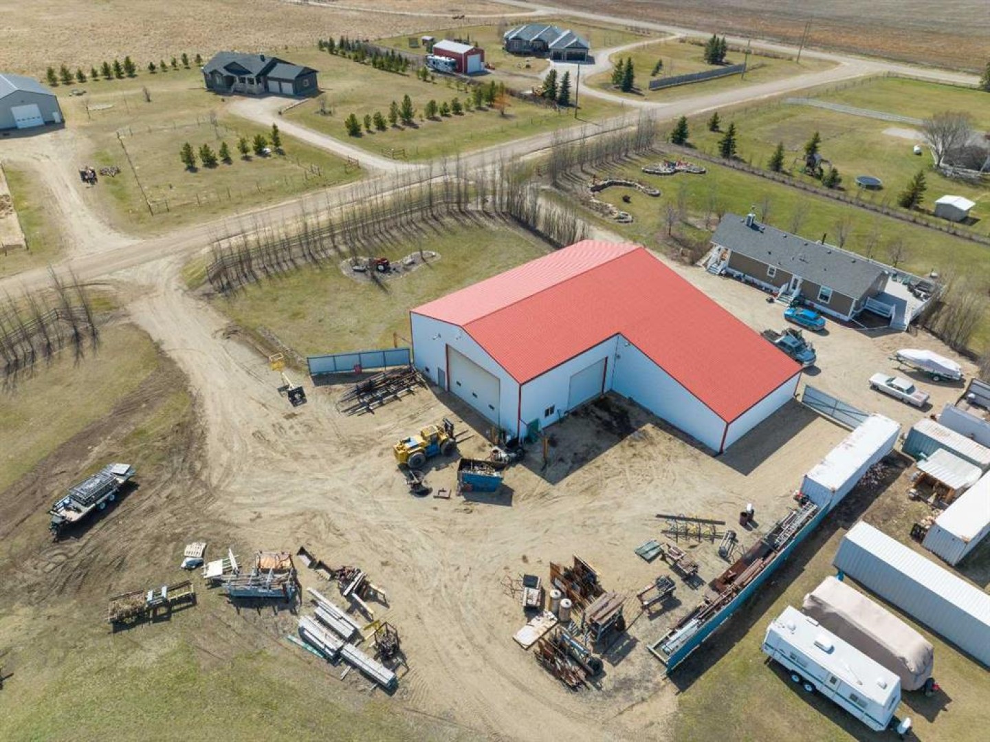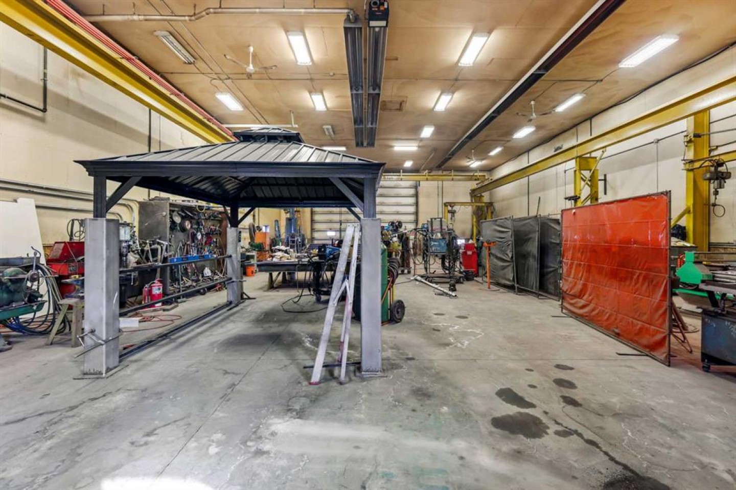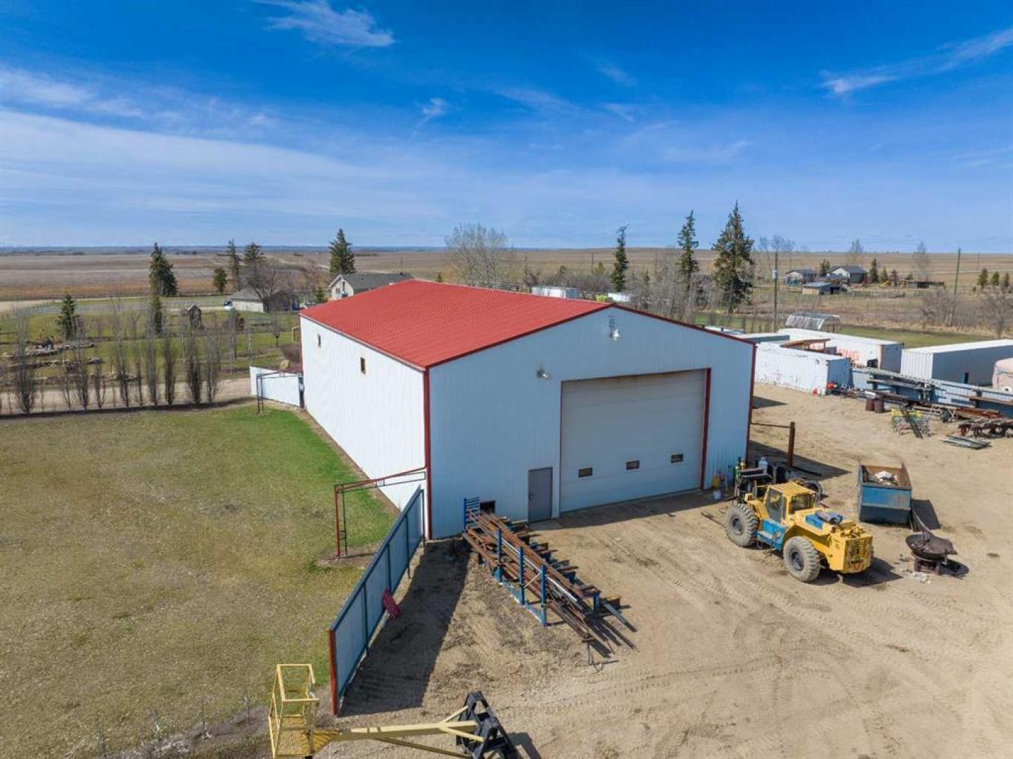 This 4,504 Sq Ft INDUSTRIAL SHOP only, (not the house or land) in Wheatland County is a well-equipped and functional workspace, ideal for manufacturing, fabrication, and mechanical operations!! The expansive 78'2" x 48'2" shop area boasts a 19'9" ceiling height, and features 3 large overhead doors, with two measuring 20'0" x 17'11" and one at 16'0" x 13'11", providing excellent accessibility for equipment and vehicles. The layout is designed for efficiency, including a dedicated office space measuring 10'8" x 7'11", a lunchroom measuring 12'2" x 10'3", a 2-piece bathroom, and a tool room, ensuring a well-organized work environment. The shop is equipped with essential industrial infrastructure, including an air compressor with air lines, a large pedestal grinder, a 5-ton overhead crane with 80 feet of crane-way, a compartment door, two exhaust fans, a first aid kit, and lockers. See goods included for the extensive equipment list. A 200-amp shop service and very well lit with T-5 lighting. The property also includes seven parking stalls in the back, with more parking in the yard, offering ample space for employees and visitors. The lease is set at $6000 per month, plus electrical and natural gas (op costs around $2000/month), making it a cost-effective option for businesses looking for a well-equipped industrial space. A minimum four-year lease is required, with terms including first and last month's rent plus a damage deposit. The zoning is CR, Commercial Residential. Snow removal is not included, and the plasma cutter, lathe, iron worker, refrigerator and more are excluded from the lease (see exclusions for the full list). This industrial space provides excellent functionality, ample workspace, and key equipment for various operations, all in a convenient location with easy access to major transportation routes. Book your showing TODAY!!