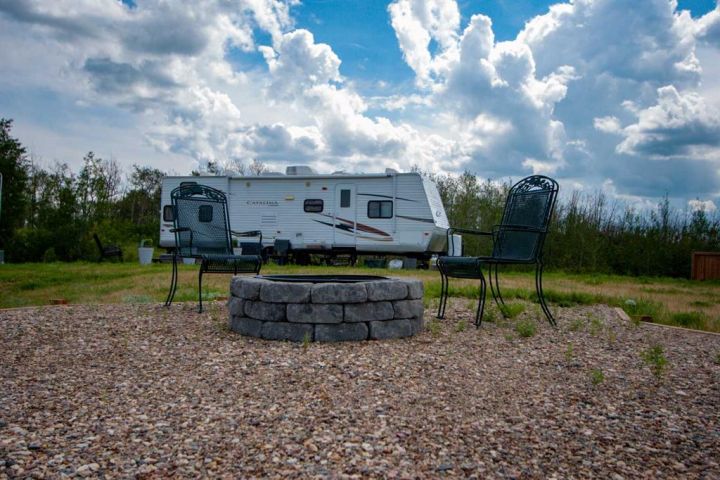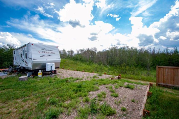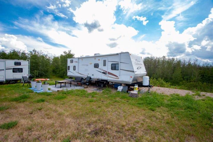 Located in the peaceful community of Buffalo Sands, this fully serviced property backs onto a forest and offers elevated sunset views over the lake. No need to wait to enjoy lake life—this lot comes with a spacious RV that sleeps up to 12, featuring a rare bunkhouse with a door so the kids can have their own private space. An outdoor dining area and beautifully built firepit make it perfect for entertaining under the massive open sky. Just steps from the shoreline—no driving to the lake needed—and boat slips are available at the dock. Pets are allowed, and there's no building requirement, making this one of the few affordable lake options where you can simply show up and relax. Buffalo Sands also offers family-friendly social events all season long, making it an ideal location.