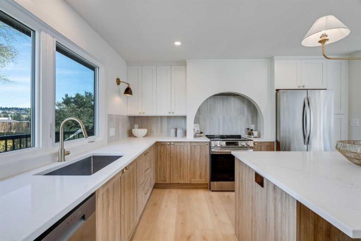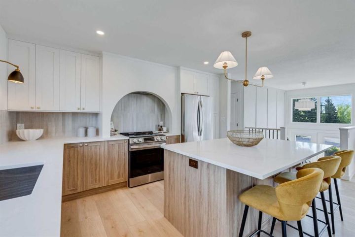 OPEN HOUSE - SATURDAY OCTOBER 4th & SUNDAY OCTOBER 5th 12-2pm FULLY PERMITTED RENOVATION | 2025 WINDOWS | 2025 FURNACE | BACKS ON TO GREEN SPACE | This is the one you've been waiting for! Nestled on a quiet, tree-lined street in the highly desirable NW community of Dalhousie, this professionally renovated and fully permitted 4 bedroom, 3 bathroom home with over 1800 sq. ft. of living space, blends modern style with family-friendly functionality. Step inside to discover a bright and airy open-concept layout featuring luxury vinyl plank flooring, all-new windows and doors (2025), and thoughtful high-end finishes throughout. The brand-new designer kitchen is the heart of the home showcasing quartz countertops, a large center island, sleek new appliances, bar fridge, eye catching arch range hood and a walk-in pantry that makes storage a breeze. The spacious primary suite offers a private retreat with a walk-in closet and a gorgeous ensuite bathroom with custom tiled shower and glass enclosure. The main floor family room features a new, built-in electric fireplace, dining room and large 8ft. patio slider door that leads to the updated, pressure treated-wood front balcony. The fully finished basement provides additional living space with a recreation room including a large, newly inspected and cleaned wood-burning fireplace, a 4th bedroom with closet and egress compliant window, full 3 piece bathroom, an updated laundry room with new stacked laundry center and under-stair storage. A new, 2025 furnace and hot water tank are nestled in the convenient and ample utility room with access from the oversized, 2 car garage. Step outside and fall in love with the private, beautifully landscaped backyard, complete with mature gardens and trees, new pressure-treated deck and no rear neighbours – just peaceful views of the off-leash green space behind. Whether you're relaxing on the deck or entertaining friends and family on the grassed lawn, this yard is your own little oasis. Located minutes from top-rated schools, parks, shopping, public transit, and major commuter routes, this home offers incredible lifestyle and convenience in one of Calgary’s most established neighbourhoods. Don’t miss your chance to own this turn-key gem in Dalhousie, truly a must-see! VIRTUAL TOUR AVAILABLE - click on virtual tour icon.