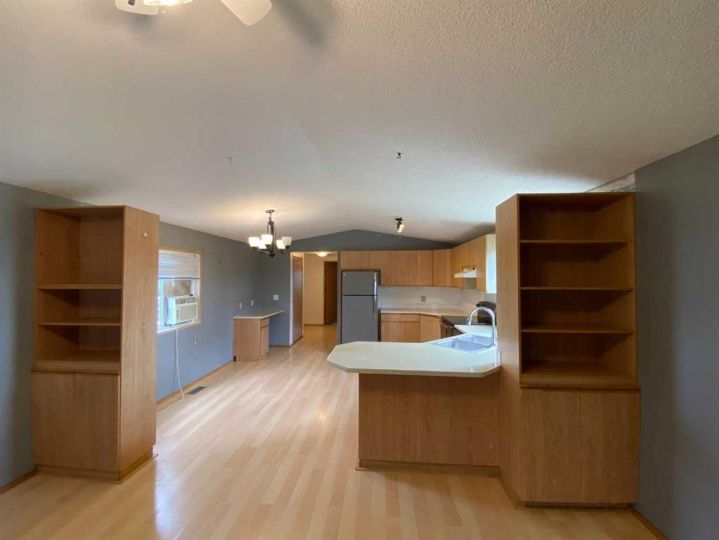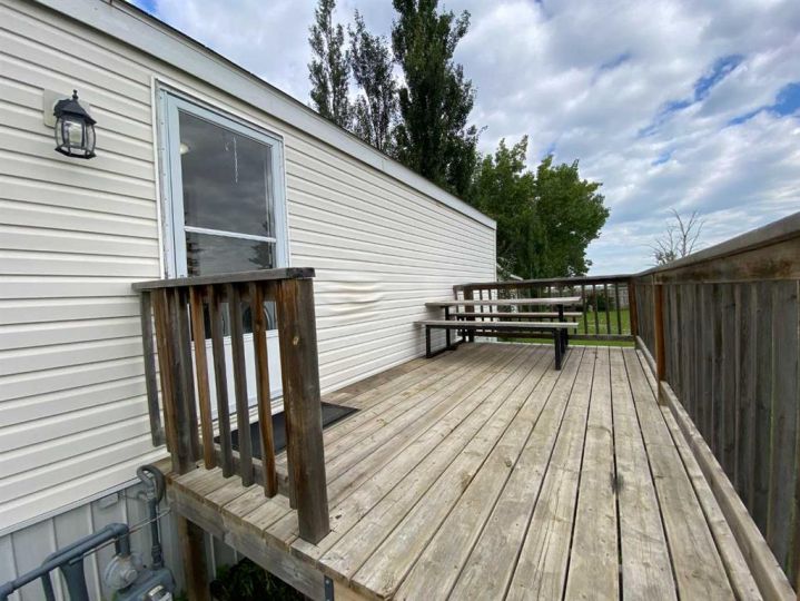 Affordable homes have been hard to find, until now. This 1998 mobile might be the solution for you. Situated at the end of a quiet street in Sagebrush estates, this three bed room two bath mobile is move in ready, and is just on the outskirts of Brooks. New siding, new metal roof, and the unique floor plan flows well, with plenty of storage, and two outside decks to relax on. Still in the county but with regional water, seasonal irrigation, public utilities, and just minutes from the amenities of the city. If your looking for a quiet space with affordable taxes and lot fees, schedule a visit soon. All hail damage has been repaired by professionals with high quality materials.