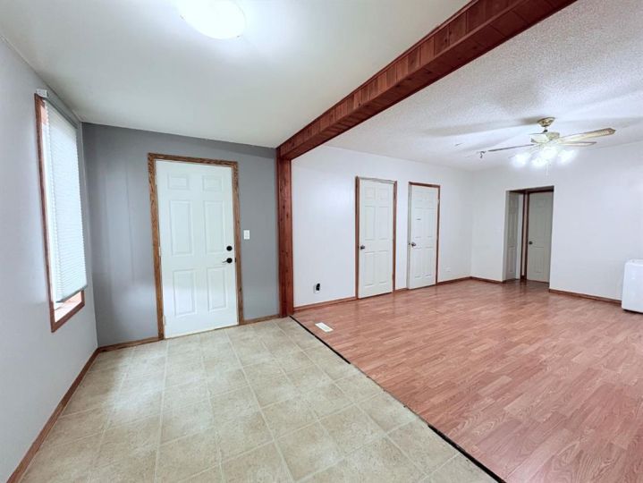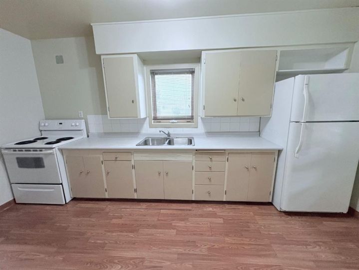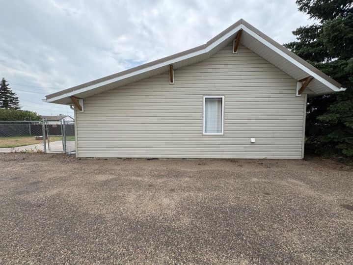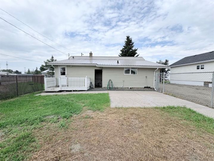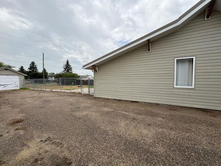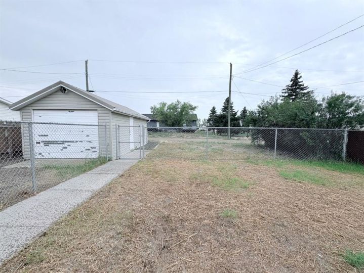 Welcome to this well maintained 2-bedroom, 1-bath home located in the heart of Acadia Valley, directly across from the arena, diner and walking distance to event centre. Offering 1,038 sq ft of comfortable living space, this home features a spacious living area with laminate flooring and an eat-in kitchen with ample counter space. The updated 4-piece bathroom includes a new tub surround, vanity, and toilet. Main floor laundry is tucked neatly into its own main level space with built in cabinet storage space. Exit through the large rear mudroom entry into a fully fenced yard, complete with chain-link fencing. The 12’ x 22’ single detached garage includes a manual lift door and is complemented by both a paved driveway and additional rear parking. A brand new concrete walkway leads to the back entry for easy access year-round. Downstairs, the basement is clean, cleared, and features two sump pumps, offering peace of mind. Enjoy long term savings and efficiency with a new tankless hot water system and upgraded electrical (2022). Additional upgrades include low maintenance metal roofing and updated vinyl siding for a modern look. This property is ideal for first-time buyers, retirees, rental income or anyone seeking a quiet and affordable place to call home. Contact your local realtor to schedule your showing today!