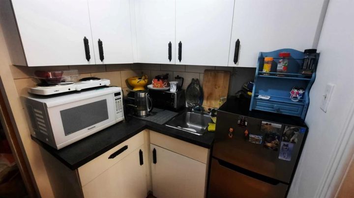 Built in Desk, Kitchen Cabinetry, Fridge, Microwave