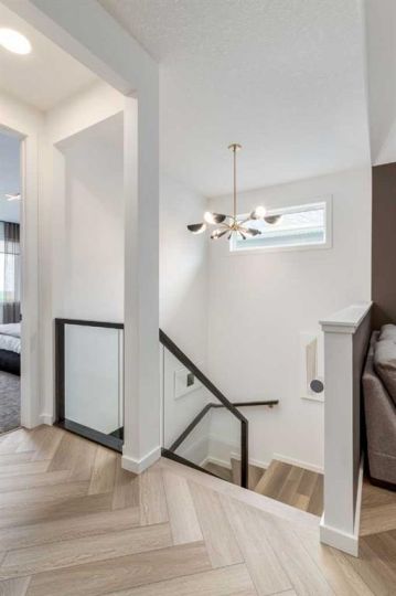 WHEN A HOUSE STARTS OUT AS A SHOWHOME, YOU NOTICE—THE DETAILS ARE SHARPER, THE FINISHES BOLDER. This Homes by Avi build carries the kind of features you rarely see offered together—deliberate, dramatic, and designed to impress. Now, instead of open house hours, it’s ready for its first owner, with possession at the END OF NOVEMBER. The main floor begins with an office that doesn’t apologize for being front and center. Framed in GLASS-PANEL WALLS and finished in a bold black palette with a COFFERED CEILING overhead, it’s designed to be on display—equal parts workspace and showpiece. From there, herringbone-pattern LUXURY VINYL PLANK flooring pulls you through the open plan: past the WATERFALL QUARTZ ISLAND and Silgranit sink in the kitchen, into a dining area that opens through a three-panel glass door to the 14’ x 10’ DECK with gas line. The living room centers on a FIREPLACE FEATURE WALL clad in vertical wood slats stained to match the dark kitchen cabinetry, dramatic and grounding all at once. Upstairs, the BONUS ROOM vaults high, finished with a wet bar and fridge so the space lives just as easily for movie marathons as it does for casual evenings in. The master bedroom takes luxury further: DUAL VANITIES frame a SOAKER TUB beneath a wide window, paired with a glass shower that feels more spa than standard. From there, the flow continues into a walk-in closet fitted with CUSTOM WOOD SYSTEMS and large enough for a central bench—then on to a laundry room finished with COUNTER, SINK, AND CABINETRY that look as considered as the rest of the home. Two more bedrooms, each with their own walk-in closet, and a full bath round out the level. The lower level is fully finished as a LEGAL BASEMENT SUITE, complete with its own kitchen, FULL APPLIANCE PACKAGE, laundry, and private entry. Independent systems—including a sub-panel and second furnace—make it practical and comfortable for multigenerational living, long-term guests, or rental income. This was never a standard build. A SPRINKLER SYSTEM, TANKLESS HOT WATER, 200-amp electrical service, GARAGE MAN DOOR, and AIR CONDITIONING confirm its showhome pedigree, while glass stair railings and designer finishes tie every floor together in one cohesive statement. Set on a SOUTH-FACING LOT in Walden, the location matches the home’s intent. JUST A BLOCK FROM WALDEN PONDS, PATHWAYS, AND PARKS, it gives you instant access to trails and greenspace, while schools, shopping, and dining sit minutes away. Quick routes via Macleod Trail and Stoney keep the rest of the city in easy reach. Showhome polish. Real-life readiness. This one is complete from top to bottom.