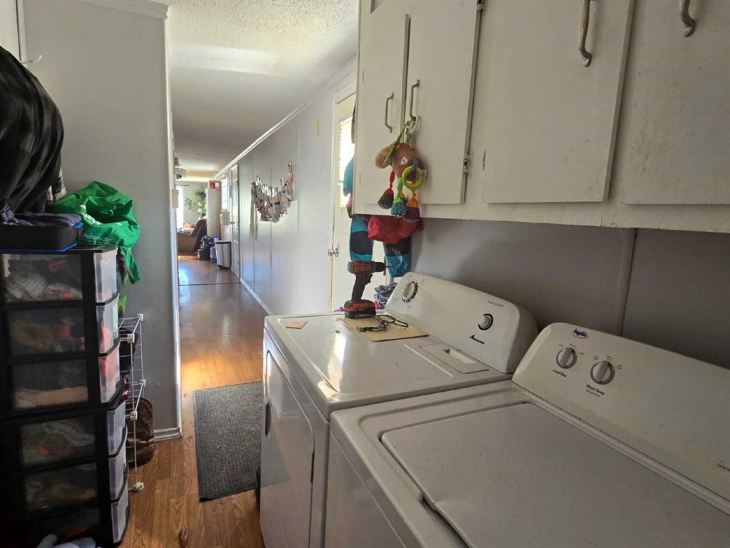 Minutes from Edson!!! This welcoming home offers a fantastic living experience with its open-concept layout, perfect for family gatherings and entertaining. The versatile middle bedroom is already wired for entertainment, making it an ideal gaming room, office, or cozy media space. Step outside to enjoy your morning coffee on the deck while kids and pets play safely in the spacious fenced yard. A 12' x 20' addition provides extra living space, giving you even more room to spread out and make the home your own. Over the years, this home has been thoughtfully updated for comfort and peace of mind. All new wiring, insulation, panel style gyprock were completed in 2017. The furnace had a new regulator installed in 2023, and in 2025 a new rod was added to the hot water tank. A new fridge and high-quality Bosch dishwasher also add to the modern conveniences. Located in the quiet, friendly Pineshadows community just minutes from Edson, you’ll love the balance of peaceful living with easy access to town amenities. Please note: The land is rented; this listing is for the mobile home only. Home recommendation new windows and a kitchen countertop.