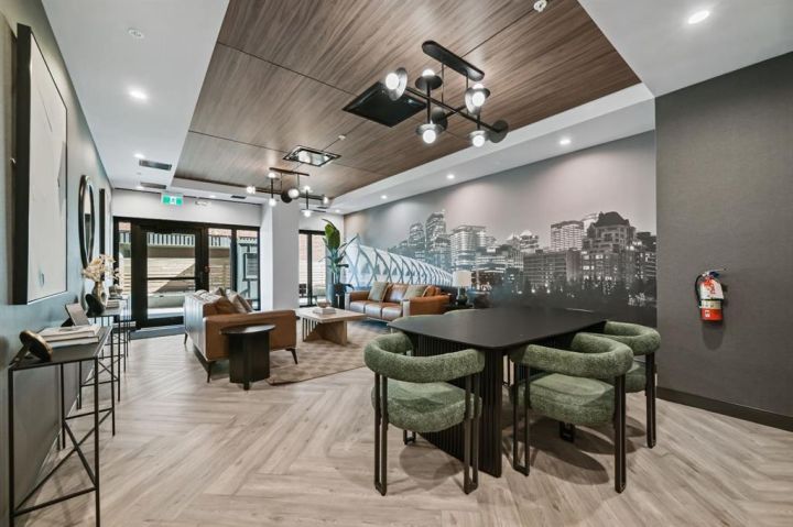 Welcome to First & Park, an elegant new address in Calgary’s sought-after Eau Claire community. This one bedroom, one bathroom home combines modern design with everyday convenience. The open-concept layout features a sleek kitchen with contemporary cabinetry, quartz countertops, and premium appliances, flowing seamlessly into the bright living space and east facing balcony. A spacious bedroom, full bath, and in-suite laundry offer comfort and functionality. Enjoy a titled parking stall and storage, along with building amenities including an upscale gym & yoga studio (patio just outside which also features gas bbq hookups), party lounge, modern co-working space and concierge. Just steps from the Bow River pathways, Prince’s Island Park, dining, and downtown, this is the perfect balance of style and location. Whether you’re a first-time buyer, investor, or looking for a stylish downtown retreat, this home at First & Park is the perfect opportunity to live where the city meets the river. ***Upon purchase, the buyer may select a titled parking stall and a titled storage unit of their choice.Show Suites Open: every Wed 11am-2pm, Thurs & Fri 3pm-6pm, please text number on sign for entry!