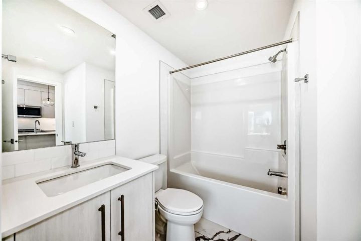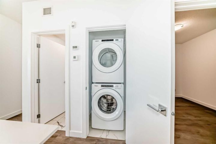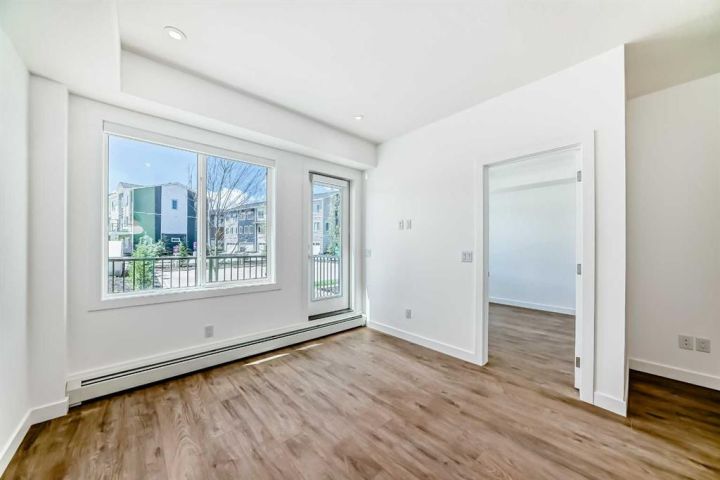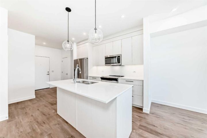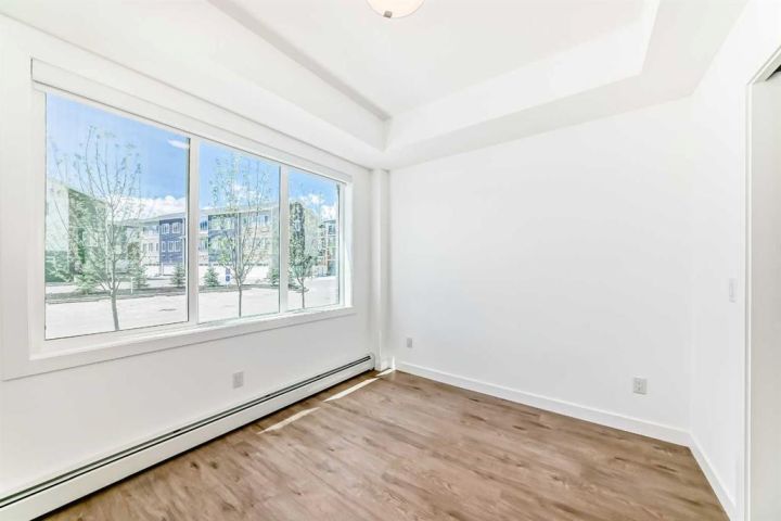PRIVATE ENTRY ON GROUND LEVEL. BRAND NEW! Step into modern living with this charming 2-bedroom, 1-bathroom first-floor condo in Chestermere. At 627 sq. ft., this thoughtfully designed unit offers a bright, open-concept layout, perfect for relaxed living and entertaining. Enjoy a contemporary kitchen featuring sleek stainless steel appliances, full-height cabinetry, soft-close drawers, quartz countertops, and an eat-up bar. The primary bedroom includes a spacious walk-through closet leading to a classy 4-piece bathroom, while the second bedroom provides flexible space for guests or a home office. This unit includes a private ground floor balcony for morning coffee or evening relaxation. Residents can also take advantage of building amenities like a gym, common lounge for parties, a bike room, and a pet spa. Located just minutes from Chestermere Lake, you'll have easy access to scenic pathways, parks, shopping, and all the amenities this growing community has to offer. This stunning home is ready for you, whether you're a first-time buyer, an investor, or looking to downsize in style.