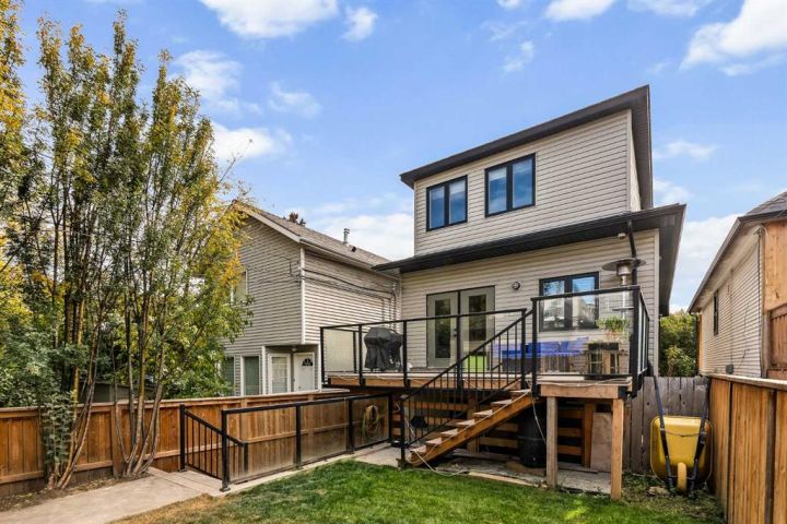 Welcome to this beautifully maintained home in the heart of South Calgary - just minutes from Marda Loop, 17th Avenue, the Beltline, and more. As you arrive, you’re greeted by charming curb appeal with mature trees, vibrant flower beds, and concrete accents guiding you up to the sun-filled front porch. From here, soak in the south-facing views that overlook the community below. Enter inside to a bright, open-concept main floor where natural light flows seamlessly from front to back. The cozy front living area, complete with a gas fireplace, leads into the recently updated kitchen featuring stainless steel appliances, quartz counters, and a stylish new backsplash. Adjacent to the kitchen, the dining space easily accommodates family gatherings and entertaining, while the patio doors open to your private deck for indoor-outdoor living. This home has been thoughtfully cared for, with brand-new windows installed this year and upgraded air conditioning for year-round comfort. Upstairs, the primary retreat offers a 5-piece ensuite with dual vanities, plus the convenience of upstairs laundry. A second bedroom completes this level. The fully developed lower level provides even more living space with a large rec room, wet bar, full bathroom, and two guest bedrooms. The walkout basement opens directly to the backyard, creating another perfect spot for relaxation. Outside, enjoy a manicured lawn, raised garden beds, and a refinished upper deck overlooking the yard. The oversized double detached garage provides plenty of storage and privacy fencing completes this picture-perfect retreat. Book your showing today!
