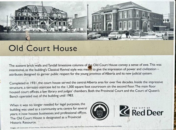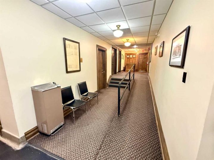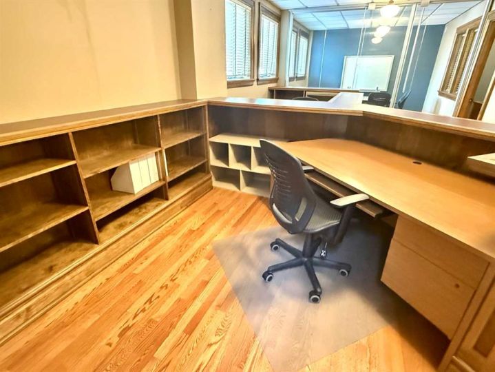 Don't miss this chance on this Unique Leasing Experience in Red Deer's NOSTALGIC ORIGINAL COURTHOUSE.. Built in 1930, dawned with all the ORIGINAL MILLWORK, and HISTORIC MEMORABILIA throughout the Main Floor Lobby ~ Attractive Landscaping all around ~Designated parking space available- High Exposure & Convenient Location on the corner of Ross & Gaetz Ave...The "HEART OF DOWNTOWN RED DEER". Featuring an Open concept professional office work-space, 2-place open reception and sitting area, two offices, file storage area included of approximately 80 sq ft (unit #107) , copier/ kitchenette area, boasting 833 SQ FT ,. three common-area bathrooms all configured in historical design and traditional materials in keeping with the style of the building. Brand new boiler heating system, utilities and common area costs ALL INCLUDED! ~ Currently configured, decorated and equipped as a law firm office ~ Original brick walls and hardwood floors throughout ~ Custom Millwork that reflects the original finishings of that building and era ~ Located one block from the present Red Deer Courthouse. Directly across from the city Hall, park and garden areas with numerous public parking options right out front of the main building. Acquire this previous law practice office space and all the history that goes with it to boot! .All that's missing is a new professional office space tenant. $1,950/month plus GST ALL IN. Option to purchase out right as well. see MLS A2263581 listed at $199,500 for details.