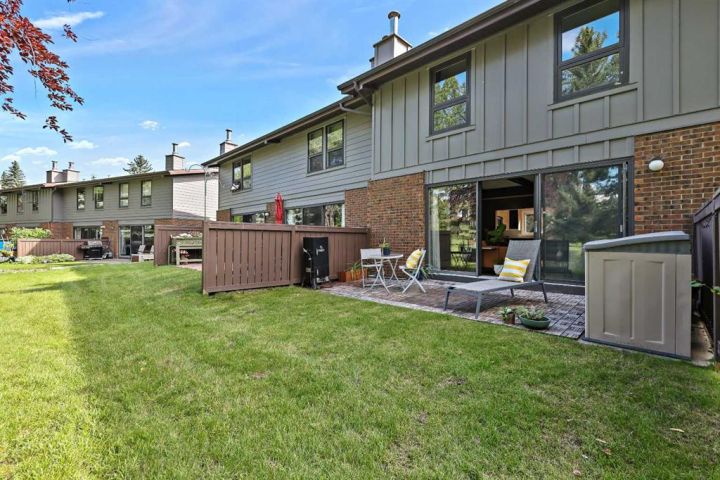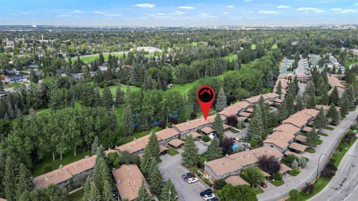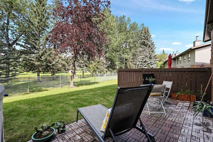 OPEN HOUSE SATURDAY OCTOBER 4TH FROM 12-2PM! Welcome to Unit 42, part of Hearthstone Place, in Willow Park! This well-designed townhome backs onto the Willow Park Golf Course and has a swimming pool in the complex (right outside your front door). Stepping foot into this adorable unit, featuring newer windows throughout and updated flooring and paint, you will immediately be charmed by the bright sunny kitchen, clean cabinet lines, and sleek countertops. All new appliances and upgraded tile flooring as well make this kitchen a must see. The kitchen, featuring well designed pass-through, flows seamlessly into the gorgeous living/dining room area with hardwood flooring throughout, a stunning wood burning stone faced fireplace. Sliding patio doors walk you out to your serene backyard area extending your living space in the warmer months. Equipped with a gas hookup for your BBQ, this unit backs right onto one of the holes at Willow Park Golf Course with a pond so you have the sound of lapping water outside your back door. Heading upstairs you will find all new laminate flooring which leads into the spacious primary bedroom with lots of natural light, ample closet space, and a 4-piece cheater en-suite with upgraded tile throughout. Two more bedrooms, currently being used as offices, complete this 2nd floor which offers you versatility and space to spread your wings. The lower level offers you more flexibility with a good flex space, currently being used as a guest bedroom, gym and lounging area. An additional updated 3-piece bathroom, laundry room and more storage complete this fantastic townhome. Parking is in front of the unit with a large carport where two cars can park tandem style with ease. Well situated across the street from Southcentre Mall, only a 20-minute drive to downtown Calgary and easy access to Anderson Trail, Macleod Trail and Stoney Trail. Call your favourite Realtor today to book your showing! Please note this complex does not allow dogs.