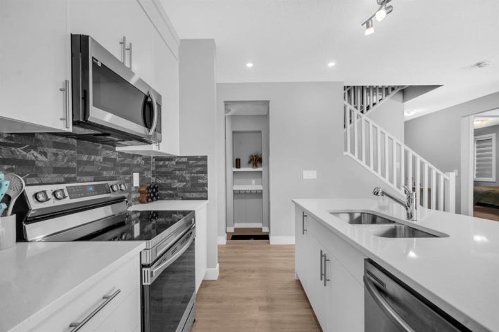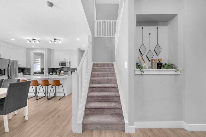 This impressive 2,800+ sq ft, 7-bedroom, 4.5-bath, MAIN FLOOR BED&ENSUITE, SPICE KITCHEN AND BASEMENT SUITE(ILLEGAL) WITH luxury design with thoughtful functionality for today’s multi-generational living. Step inside to soaring 9-foot ceilings on both main and upper levels, 8-foot doors, and elegant open-rail staircases that set a grand tone throughout. The chef-inspired kitchen boasts full-height cabinetry, granite counters, stainless-steel appliances, abundant pot lights, and a BRIGHT SPICE KITCHEN with its own window and pantry. The great room features a modern fireplace and generous windows that fill the home with natural light. A spacious MAIN-FLOOR BEDROOM with ensuite makes this layout ideal for guests or extended family. Upstairs offers four large bedrooms, each with its own walk-in closet, a sun-filled bonus room, a dedicated laundry room, and multiple windows bringing in beautiful natural light. Bathrooms are elegantly finished with granite counters and high-quality fixtures. The basement continues to impress with high ceilings, a separate side entrance, a full second kitchen with stainless-steel appliances and granite counters, a large living area, and two bedrooms. Set on a wide lot with great curb appeal and located just steps from Carrington Plaza, featuring No Frills, McDonald’s, and more retail conveniences, plus easy access to Stoney Trail for seamless commuting across the city. All in desirable NW Carrington, steps to Carrington Plaza conveniences like No Frills, McDonald’s, lots of retail options and with easy access to Stoney Trail for effortless commuting. Don’t miss your chance, Schedule your showing today!