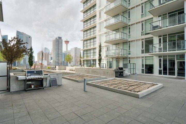 Welcome to your modern retreat in the heart of Calgary’s vibrant Beltline! Perched on the 19th floor, this sleek 1-bedroom, 1-bath condo in The Guardian South Tower captures stunning PANORAMIC VIEWS of downtown Calgary and the Bow River through FLOOR-TO-CEILING WINDOWS all from your balcony. Designed for comfort and style, this thoughtfully laid-out home features contemporary finishes, bright open spaces, and elegant flooring throughout. The kitchen boasts integrated cabinetry, concealing the refrigerator and dishwasher for a seamless look, along with an INDUCTION COOKTOP and a BUILT-IN MICROWAVE—perfect for the modern cook. The open-concept living area flows effortlessly, creating the ideal space to relax or entertain while taking in those incredible city views. The bedroom is filled with natural light and includes a custom BUILT-IN CLOSET system with DRAWERS, offering smart storage without the need for a dresser. A stylish 4-piece bathroom sits conveniently nearby, and IN-SUITE LAUNDRY with a STACKED WASHER AND DRYER adds everyday ease. Enjoy secure, carefree living with 24-hour concierge service, resident-only floor access, and a TITLED UNDERGROUND PARKING STALL (currently leased for $50/month). You’ll also appreciate the ASSIGNED STORAGE UNIT for your extra belongings. The Guardian sets the standard for downtown amenities: a fully equipped FITNESS CENTRE with SHOWERS, an inviting ROOFTOP TERRACE with BBQs, a residents’ LOUNGE with a kitchen and games area, and even a WORKSHOP for crafts or woodworking. Perfectly positioned near the Calgary Stampede grounds, LRT, and an array of boutiques, restaurants, and entertainment, this home offers the best of urban convenience and style. Whether you're a first-time buyer, investor, or city dweller looking to downsize, this is downtown living at its finest.