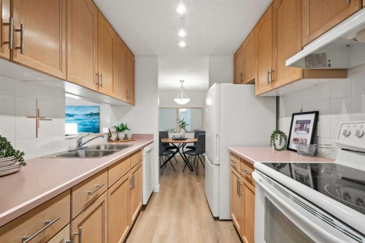 UNDERGROUND PARKING | 2 ELEVATORS | WELL-MAINTAINED BUILDING | NEWLY RENOVATED | This beautifully updated 2-bedroom home offers incredible value with a bright, functional layout. The spacious kitchen features a generous amount of counter space, ample cabinetry, a new refrigerator, and a peek-a-boo opening to the living room for an open-concept feel. The large dining area is perfect for entertaining and flows seamlessly into the spacious living room, which opens onto a quiet, sunny south-facing balcony. The king-sized primary suite includes a walk-through closet into the updated bathroom, complete with a new sink, new faucet, and newly renovated walk-in shower featuring a sleek ceramic tile surround and glass sliding door. Additional updates include new luxury vinyl plank flooring, trim, lighting, hardware, and fresh paint throughout. Parking is a breeze with heated underground parking plus free street parking right out front. This well-managed, 40+ building offers a social room, a healthy reserve fund, and a strong sense of community among residents. Enjoy the unbeatable location, walking distance to Chinook C-Train Station, Chinook Mall, Glenmore Reservoir, and a wide range of amenities, including groceries, restaurants, and a movie theatre. With quick access to Glenmore Trail, Elbow Drive, Macleod Trail, and downtown, commuting and daily errands are effortless.