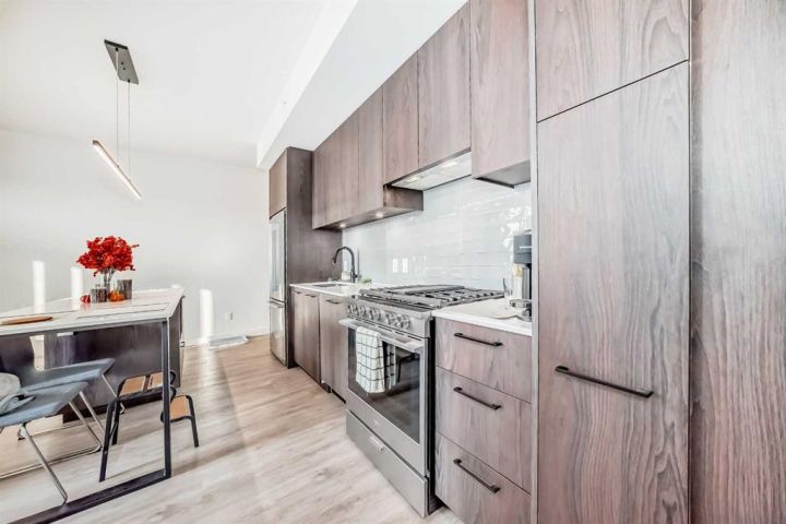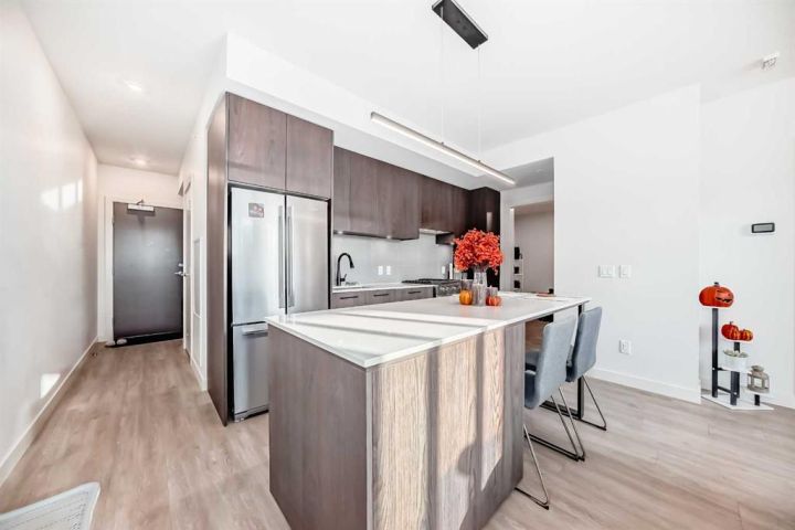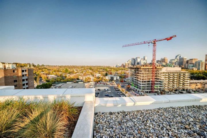 One of the best things about Kensington is The Theodore. Situated on the corner of Gladstone and 10th, across from Safeway and LRT, steps from a plethora of artisan shops and moments from the Bow River and pathways, down the hill from SAIT, a short drive to Foothills hospital and UofC and a short walk to work in the core, this building is perfect. This unit has much to offer including high ceilings, built in AC, a large balcony with afternoon sun, gas stove, in-suite laundry and titled parking. This unit is perfect for investors (already tenanted) single professionals or a couple looking to get into the market. Work from home or set up a yoga retreat in your den. The rooftop patio is equipped with 2 bbq, outstanding views (you can see both the mountains and downtown) and lots of seating. You will find a first come first serve bike storage on the first floor. Condo allows one pet per unit, dogs under 25lb. Set up a viewing today with your favourite Realtor or contact me directly for a showing.
