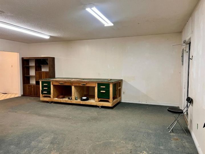 Excellent main-street commercial and live/work opportunity in Caroline. Located between the grocery store and the library for high visibility and foot traffic. Approximately 2,000 sq ft offering flexible space with front reception / retail area, large rear work shop or storage area, plus full kitchen, full bath, and living quarters with side deck and yard. Residential use is permitted if business is maintained. Rear parking and storage, plus street parking at the front. An ideal, versatile space with multiple potential uses.