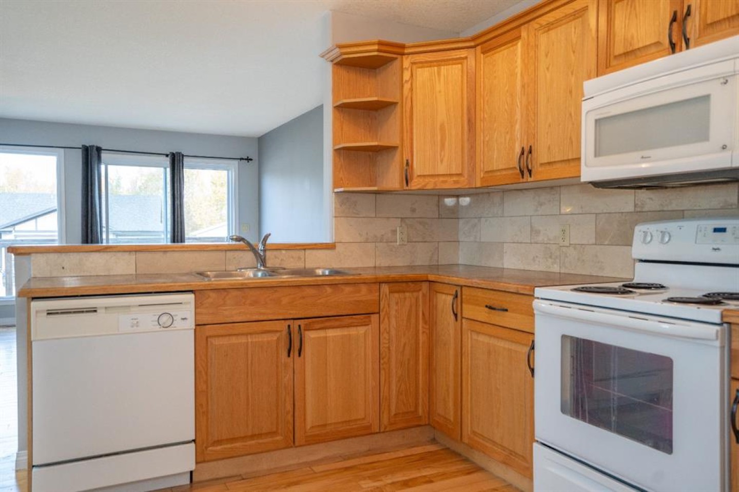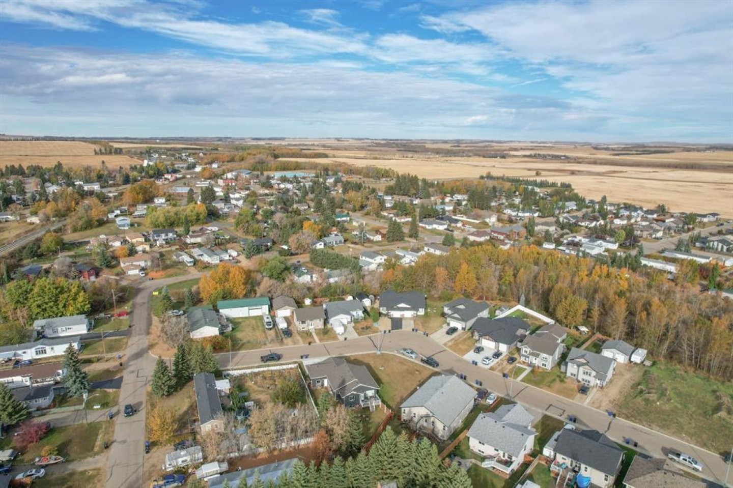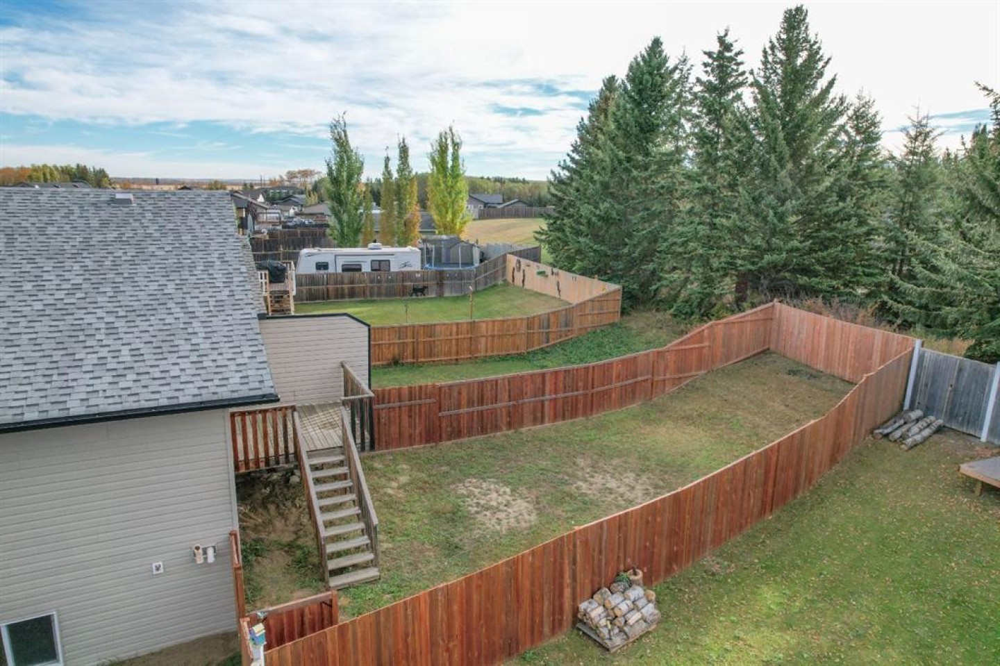 WELCOME TO CLIVE! From the great Van Eaton Way comes a solid 2009 half duplex, featuring 1204 square feet, a fenced backyard, and a front balcony to take in one of the well kept neighbourhood. Open concept spanning the living room, dining room and kitchen at the front of the home. Real wood cabinets and a peninsula island with breakfast bar. Down the hall three bedrooms greet us, with the master being at the very back of the home and enjoying southern sun as it looks upon the fully fenced backyard. A four piece bathroom and a laundry room complete the upper floor. Downstairs is partially finished and offers a large family room, a 2 piece bathroom, a framed out fourth bedroom and a utility room with central vac and roughed in in-floor heating. Clive is a tremendous community offering a great school, pharmacy, excellent food and lovely people. For everything else Lacombe is just 20 minutes down the road and Red Deer just 35!