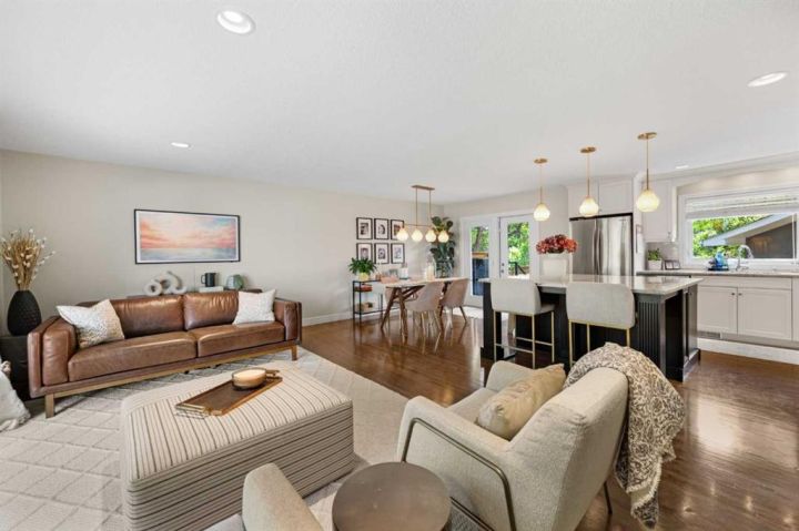 Click brochure link for more details. Exceptional home, across from the park! Stunning and spacious 4-level split. Features: professionally landscaped backyard, semi finished oversized detached double garage w/220v electrical, shed with full electricity + lighting, gasline to deck and garage, hot + cold outdoor hose bibs, both side and rear lane access, steam shower, multiple built ins/organizers, A/C, professionally installed Radon mitigation system, knockdown ceilings, wood and gas fireplaces, new lighting, beautiful casings, gorgeous site finished hardwood flooring, and more. Walking distance to Chinook Park + Henry Wisewood schools, parks, shops, Heritage Park and Rockyview Hospital. Recent updates include finished laundry room with new washer/dryer + new stair spindles/bannisters (see photos) + new fridge and insulation/drywall in garage.