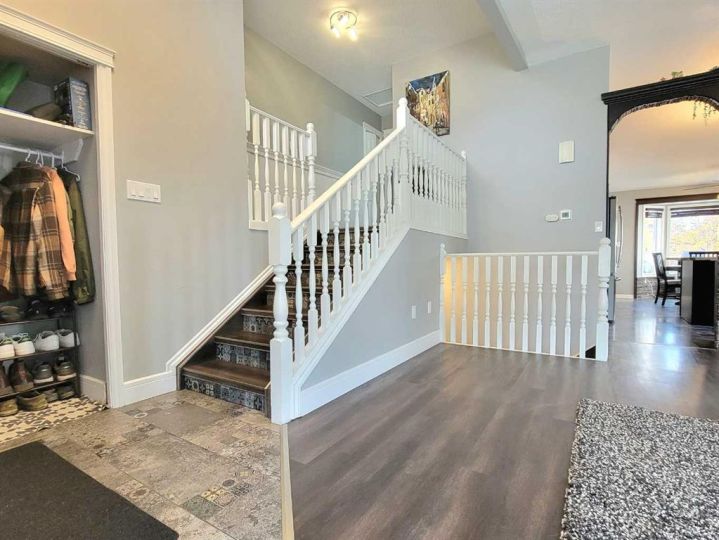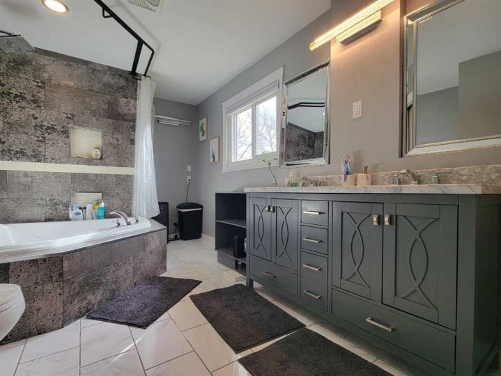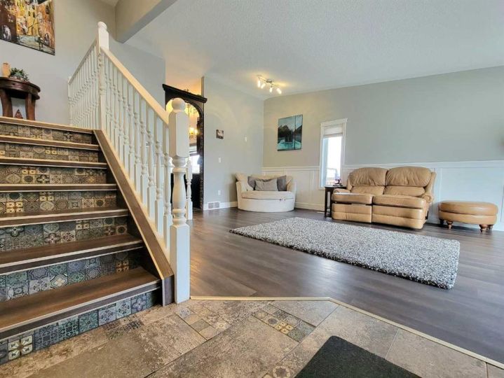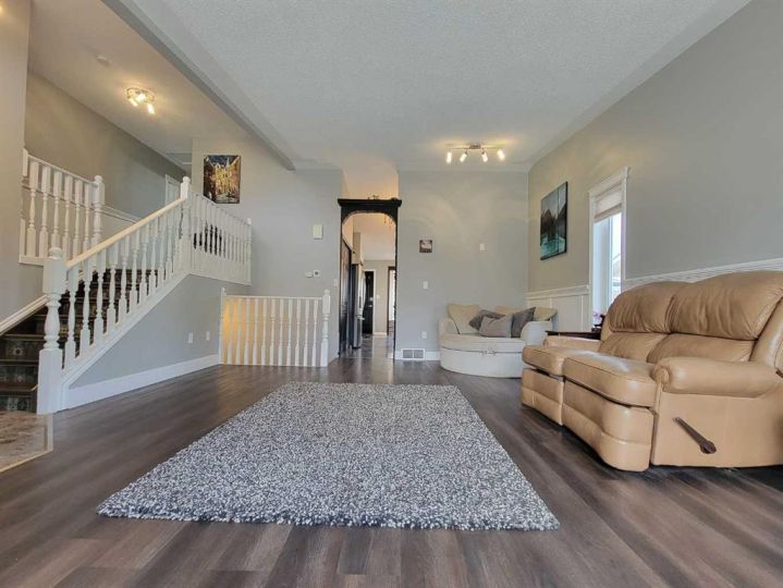 Discover the epitome of modern living in this exquisite 1292 sq. ft. residence. This home offers a perfect blend of comfort and style. The heart of this property is its gourmet kitchen, where culinary dreams come to life. Featuring sleek dark cabinetry, a stunning wooden island, and high-end stainless steel appliances, it's a space that inspires creativity and gathering. The living areas exude warmth and sophistication, with plush seating, elegant wainscoting, and large windows that flood the space with natural light. Hardwood floors throughout add a touch of timeless elegance, while the cozy fireplace promises intimate evenings. Retreat to the tranquil primary bedroom, a spacious haven, complete with an ensuite bathroom that rivals any luxury spa. With three bathrooms in total, this home ensures comfort and convenience for all. For those who work from home, the dedicated office space offers a quiet, productive environment. Additional features include ample storage solutions and a laundry area for ultimate convenience. Located in the desirable neighborhood of Grande Prairie, this home puts you at the center of it all. Experience the perfect balance of urban amenities and suburban tranquility. This isn't just a house; it's a lifestyle upgrade waiting for you to make it your own. Your aspirations of a luxurious, comfortable life start here.