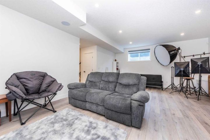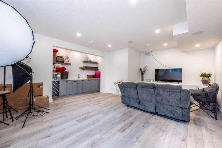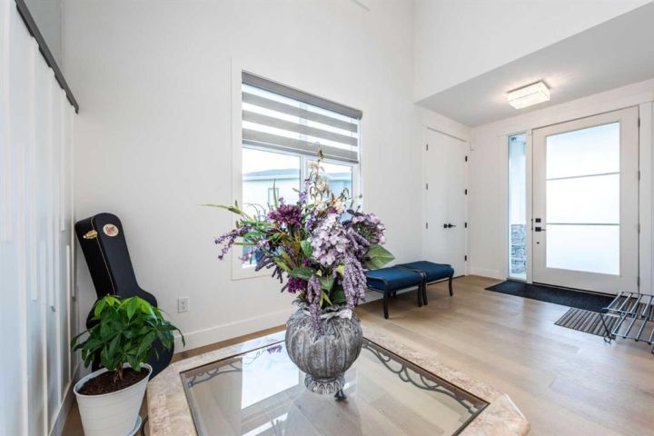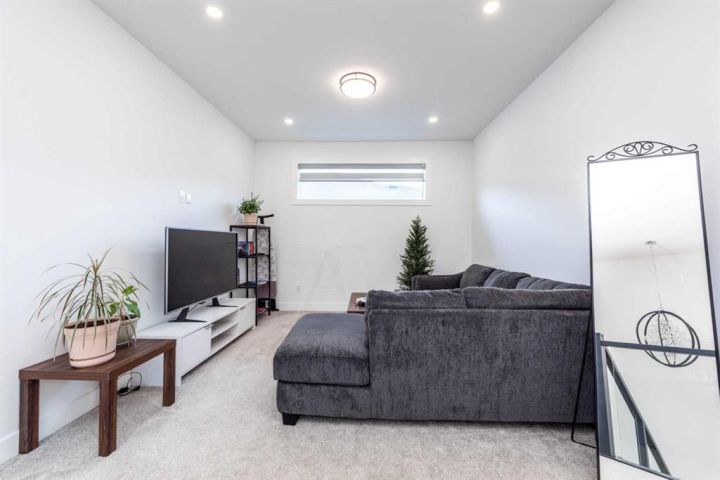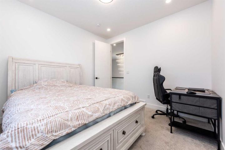 Welcome to this fully upgraded 6-bed executive home, built in 2022 on a PIE-SHAPED lot located on a quiet cul-de-sac in The Hamptons—one of Calgary’s top golf course communities. With over 3,400 sq. ft. of living space, this home blends luxury, comfort, and smart design. As you enter, you’ll be impressed by the grand open-to-below formal living space with large windows, high ceilings, engineered hardwood floors, 8-foot doors, and modern glass railings. The main floor is bright and open, featuring a spacious living room with a sleek fireplace, a formal dining area, and a dream kitchen with premium KitchenAid appliances, shaker cabinets, quartz countertops, a large island with undercounter vacuum system , and a walk-through pantry. There’s also a versatile den or office that can be used as a bedroom, along with a full bathroom—perfect for guests or multigenerational living. High-end finishes and 9-foot ceilings on all three levels enhance the upscale feel. Upstairs offers 3 spacious bedrooms and 3 full bathrooms. Generously sized master suite with tray ceilings, a huge walk-in closet, and a spa-like ensuite featuring heated floors, jacuzzi tub, double undermount sinks and custom shower. A second master bedroom with its own ensuite adds convenience and flexibility. A third bedroom with a full bathroom, bonus room and upper-level laundry with a sink complete this floor. The fully finished basement has a separate side entrance and includes two large bedrooms, a full bathroom, a cozy rec room with a big wet bar—great for entertaining or a private suite. Outside, enjoy a south-facing fully landscaped backyard that backs onto green space and opens to walking trail for easy access along with added privacy and peace. Extras include built-in sound system on all 3 levels, central A/C, high garage ceilings, motorized window blinds, 80 gallon hot water tank, water softener, hard-wired CCTV camera system and 200 Amp power service. Don’t miss this rare chance to own a custom luxury home in one of Calgary’s most desirable communities. Book your private showing today!