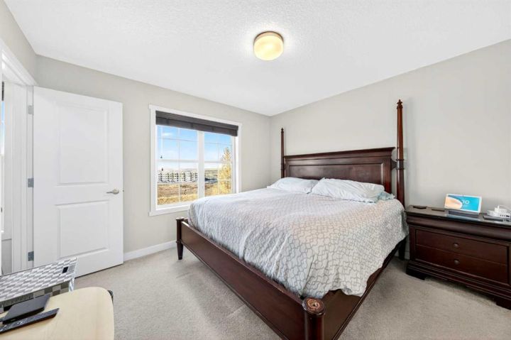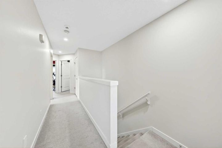 Discover this stunning End-Unit Townhouse in Nolan Hill, backing onto a peaceful Pond, Green Space, and Walking Paths—no neighbors behind! This home features 3 Bedrooms, 2.5 Baths, and 1,546 sq. ft. of thoughtfully designed living space. Step into the Main Floor with 9’ ceilings and gleaming hardwood floors throughout the Open-Concept Layout. The Kitchen showcases a Central Island, Raised Eating Bar with Quartz Countertops, Stainless Steel Appliances, plus a convenient Pantry. The Living Room includes a Juliet Balcony, while the Dining Area opens onto a Balcony with Gas Hookup, perfect for BBQs while enjoying serene Pond views. A Half Bath with Window completes the Main Level. On the upper level, the Primary Bedroom offers a Walk-In Closet, 3-Piece Ensuite with a standing shower and seat, and a large window overlooking the Pond. Two additional Bedrooms, one with a Walk-In Closet, share a 4-Piece Bathroom, and the Upper-Level Laundry adds practicality. Additional highlights include a Double Attached Tandem Garage with a rear room that’s perfect for a Gym or Workshop, plus Visitor Parking conveniently next to the unit. Within walking distance to Green Space Pathways, Shopping, and Public Transit, with easy access to Shaganappi Trail and Stoney Trail. Don’t miss this rare opportunity to enjoy Nolan Hill living at its finest!