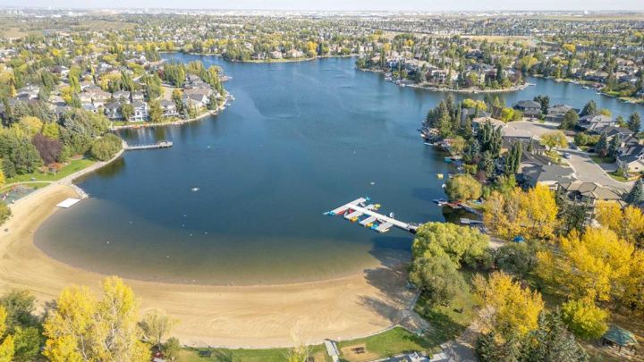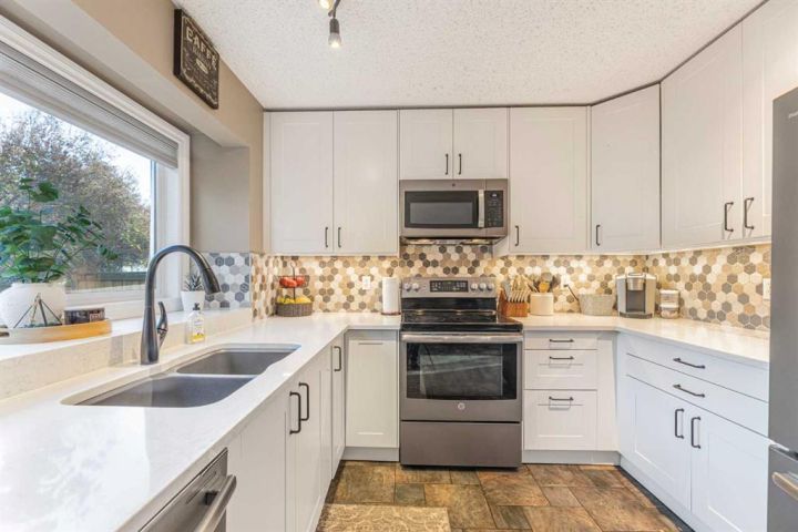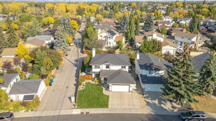 Welcome to this beautifully upgraded home with extra side yard, located just a short walk from the private lake, two schools, parks, river pathways and shopping. From the moment you step inside, you’ll be impressed by the grand vaulted entrance, showcasing inlaid tile flooring and a sense of timeless sophistication. The home has been extensively refreshed, the main floor features an updated half bath, a front flex room, a formal dining room, and a bright dinette that flows seamlessly into the living room, complete with a cozy gas fireplace for cooler nights. The completely renovated kitchen is a showstopper, boasting quartz countertops, new white slow-close cabinetry, custom backsplash, stainless steel appliances, undermount lighting, and thoughtful design throughout, perfect for both everyday living and entertaining. Upstairs, you’ll find four spacious bedrooms, a laundry room, and an open den area ideal for a home office or study nook. Both bathrooms have been fully renovated, including a four-piece main bath and a luxurious four-piece ensuite with high-end finishes. The fully finished basement expands your living space with two large rec rooms, a fifth bedroom, and another three-piece bathroom—offering flexibility for guests, hobbies, or family movie nights. Outdoors, enjoy the massive deck and patio designed for entertaining with a retractable awning, hot tub ready, and complemented by multiple storage sheds. Additional updates include a newer roof, upgraded vinyl windows, PEX plumbing, updated hot water tanks, a new furnace with heat pump, and a heated double attached garage—ensuring year-round comfort and peace of mind. This meticulously maintained home truly has it all: show home quality, modern upgrades and an unbeatable location in a family-focused community with access to excellent schools, golf courses, and the beauty of nearby Fish Creek Park and the Bow River. Quick access to Deerfoot and Stoney Trail ensures easy connectivity across the city. Call today for your own private showing!