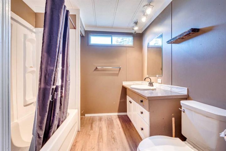 Move in Ready, 3 bedroom 1 bath mobile with many upgrades in the recent 2 years, many this summer, on a rented lot. Home features a bright and functional layout with a spacious living area, refreshed finishes, and a simple kitchen with a bright dining room, a larger primary and 2 more bedrooms of a comfortable size, and the full bathroom has recent updates. .Other upgrades include but are not limited to brand new skirting, new front stairs and lighting and the underbelly has been secured and refreshed with extra insulation, this September, new flooring throughout recently. This mobile is situated in the Trochu Mobile home park, with a very reasonable $330.00 a month lot lease, that covers water, sewer and garbage pick up, within walking distance to the local school, arena, pool, and downtown core as well as the local arboretum and numerous beautiful walking trails.