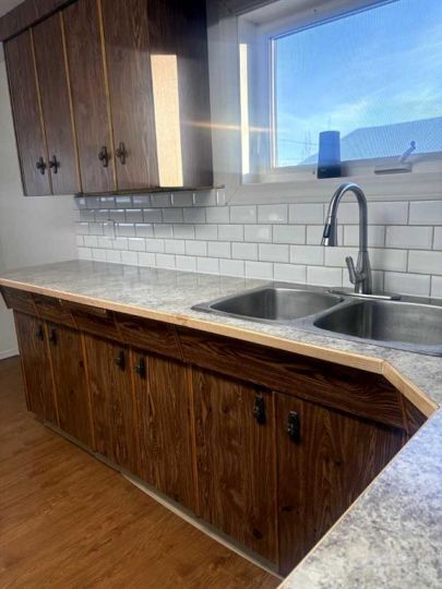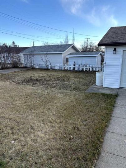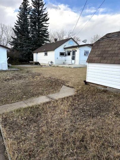 Welcome to our beautiful town of Consort, we present this 1950"s storey and a half home comes with 993 sq ft and has been fixed up with new flooring, new fixtures, interior paint and new laminate counter tops. There are three bedrooms and one bathroom on the main floor, along with the cozy kitchen with an eating area and a nice size living room. On the upper level is more space that used to be used as a bedroom and sitting area. The rear porch has the washer and dryer in it. In the partial basement is the furnace(15 years old) and hot water tank(11 years old) along with some shelves for storage. Outside on this 9200 sq ft lot is the detached double garage with two doors, an 8x12 shed that holds all the lawn maintenance equipment and a large spot for the garden. There has been new sidewalks poured in the past, the roof on one half(S) is 5 years old and the other half(N) is new. Vinyl siding is all around the house with a few windows that have been replaced. Out front towards the road are a few large trees that tower over the house and a fence.