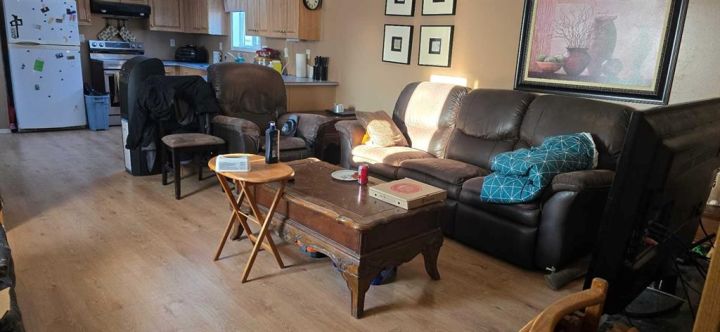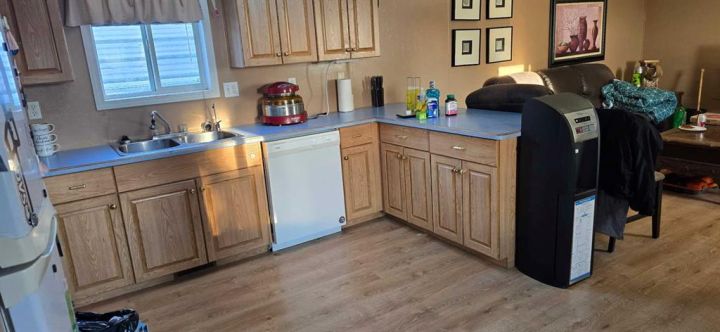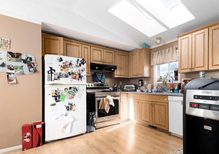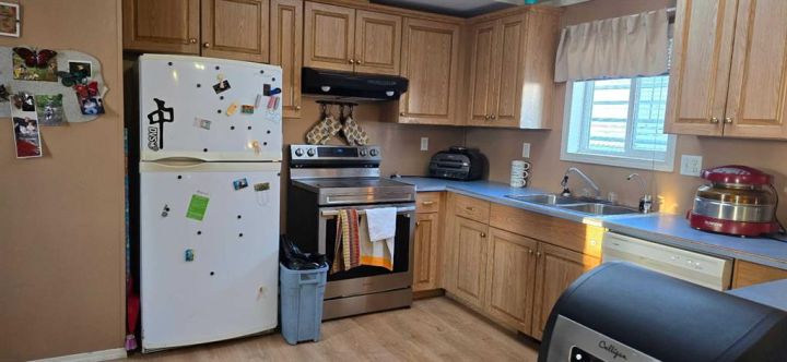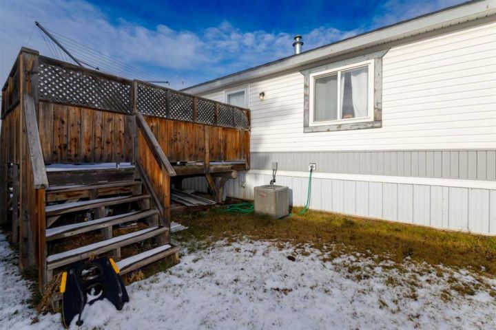 Welcome to quiet, private living in the highly desirable Joffre Trailer Court. This spacious 3-bedroom, 2-full-bathroom mobile home is a perfect fit for Nova Plant workers thanks to its unbeatable proximity to the plant and incredibly low lease fees. Featuring a bright kitchen illuminated by a skylight, this home offers a comfortable layout with air conditioning and energy-efficient vinyl windows. Enjoy the outdoors with two separate entrances and decks. The property also includes a versatile garage (currently used for storage) that could easily be converted back to a one-car garage. Ready for its next owner to maximize its fantastic features! Join a community known for great neighbours and enjoy the peace and privacy this court offers. This is an incredible opportunity to secure affordable housing near your workplace!