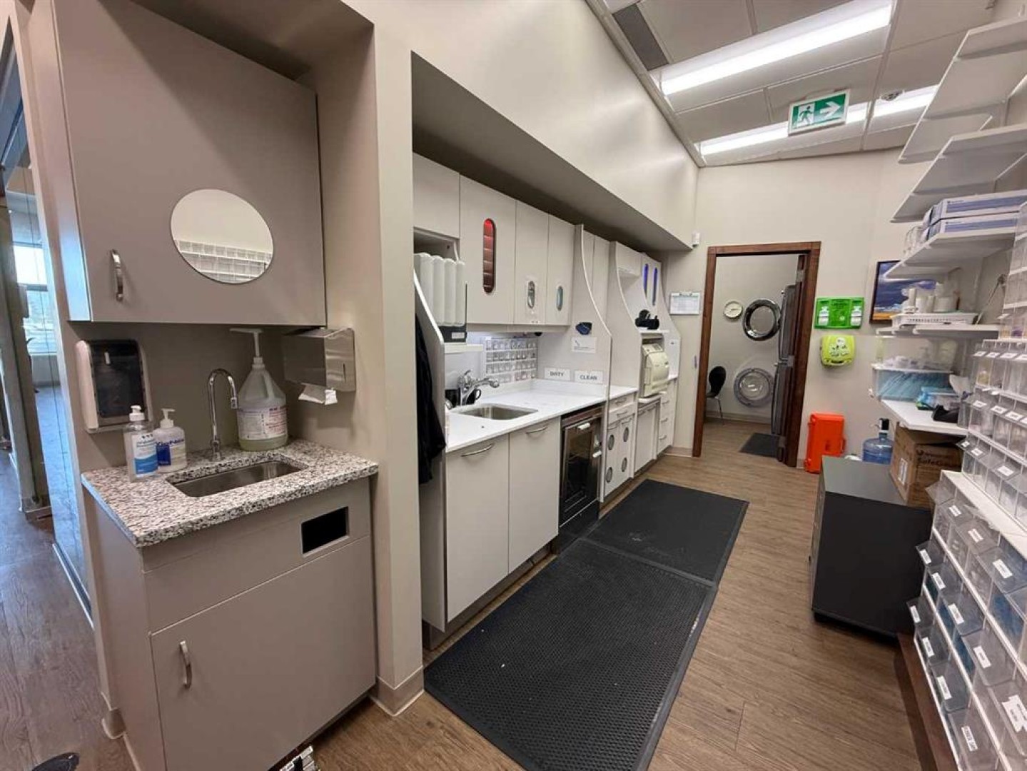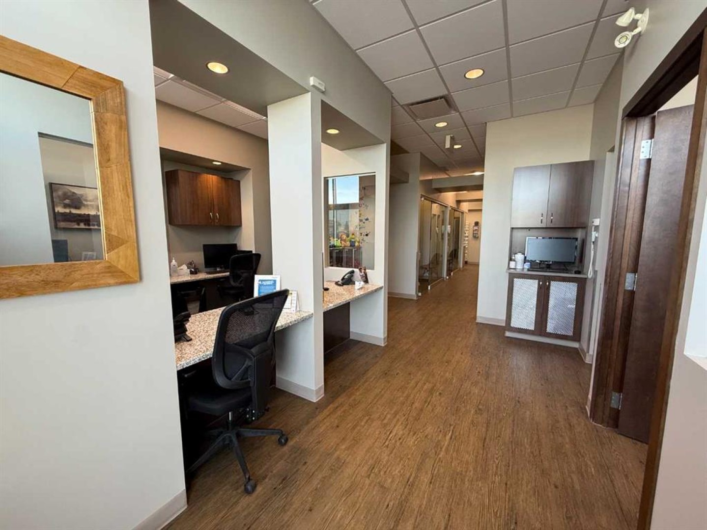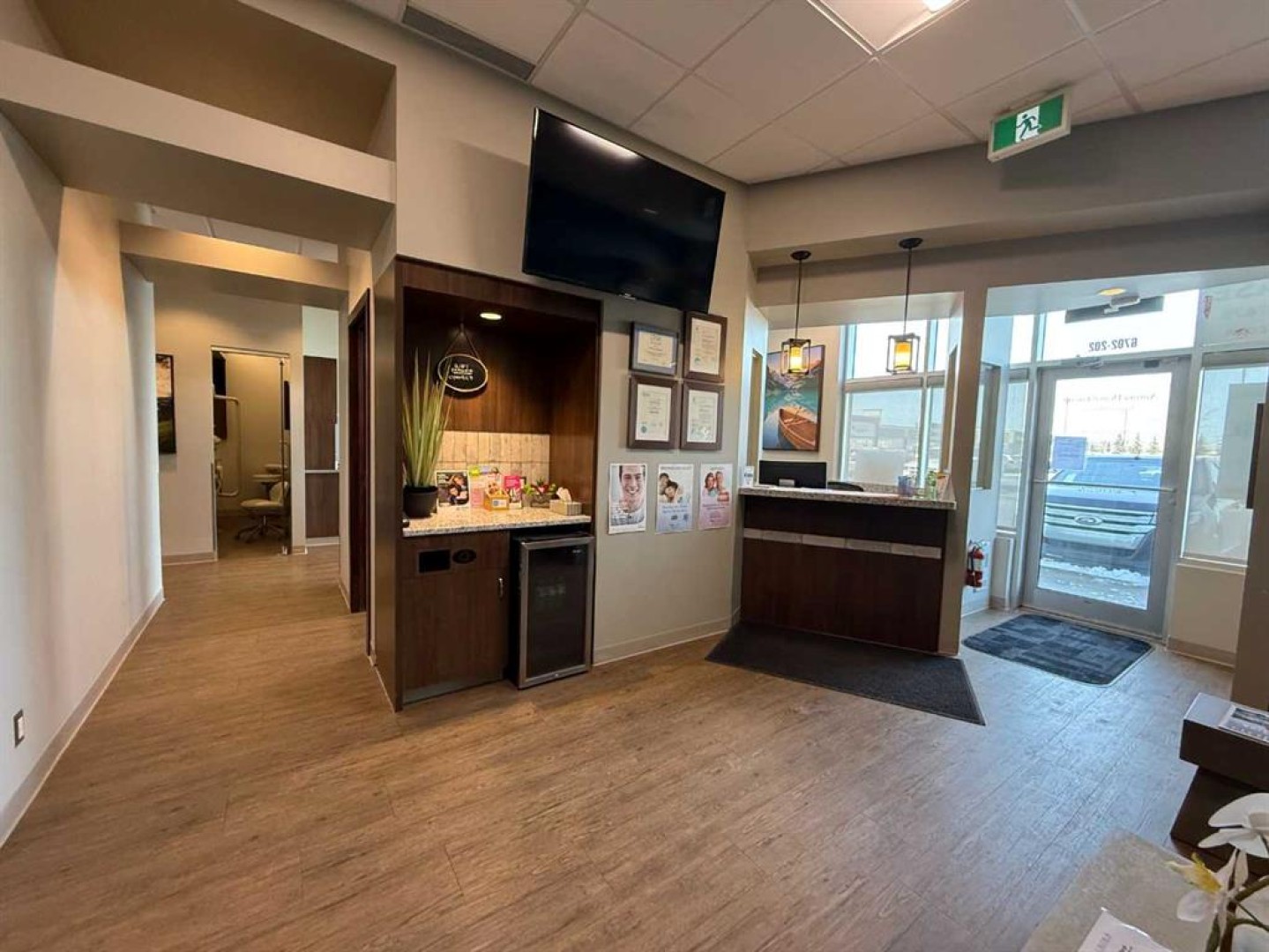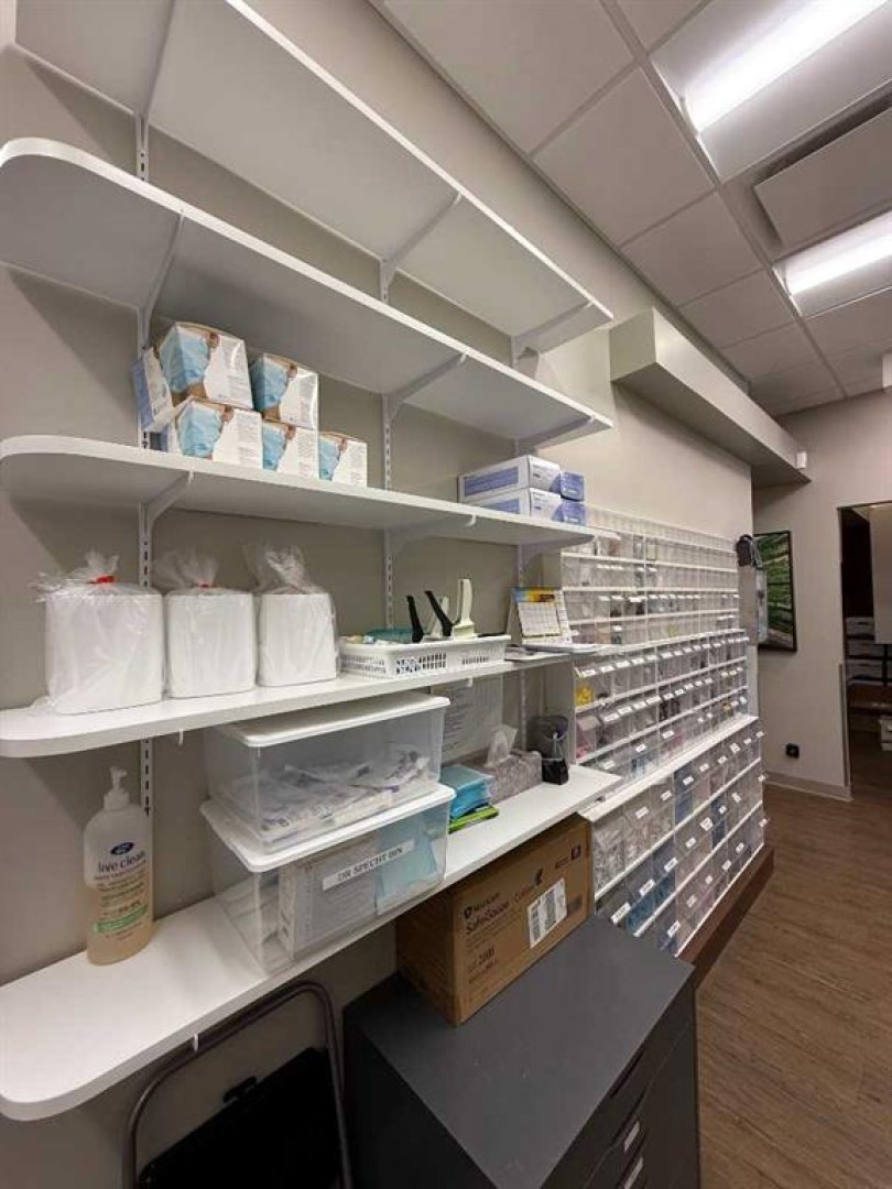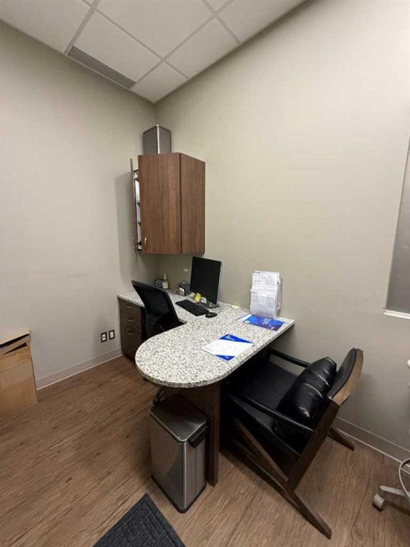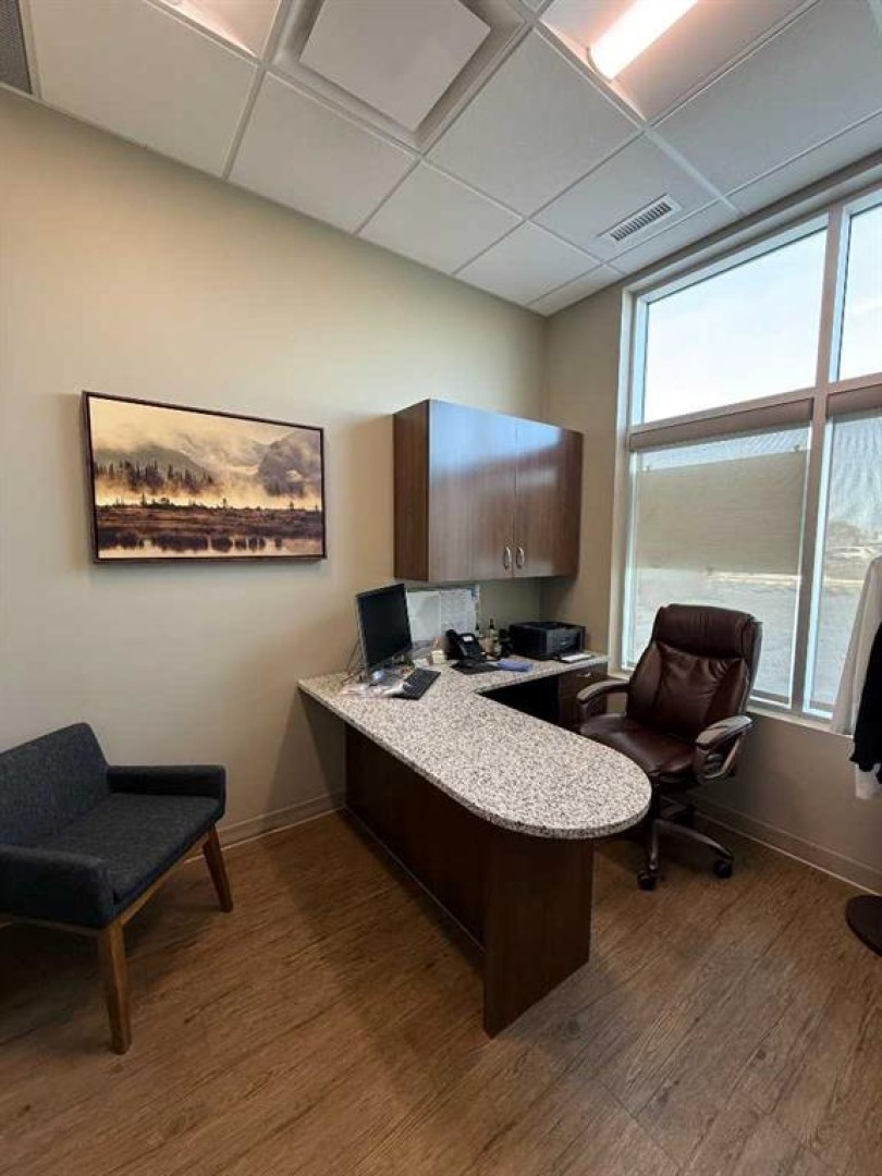 Exceptional opportunity to lease a fully equipped medical suite in Golden West Plaza, located at the prominent corner of 67th Street and Johnstone Drive. This modern, well-maintained space offers immediate possession and comes complete with a full array of dental and medical furnishings, ideal for a practitioner seeking a seamless move-in experience. The unit features five patient rooms, each designed with passthrough cutouts for integrated equipment use, a dedicated X-ray room, and two private offices. A central sterilization corridor is outfitted with dental tools and ample storage. The reception area includes a functional front desk, a welcoming waiting area, and a children’s corner with interactive light-up flooring and a TV. Additional amenities include public and private washrooms, a fully outfitted staff lunchroom with stove, fridge, washer, and dryer. The office space incorporates modern design elements, including glass doors and quality finishes throughout. Located in a busy commercial hub with strong co-tenancy, including McDonald’s, Subway, Tommy Guns, Esso, State & Main, Jiffy Lube, and Ricky’s. This is a rare turn-key opportunity for dental or medical professionals in a high-exposure, service-oriented plaza. Additional rent is $18.00 PSF, (doesn't include utilities)