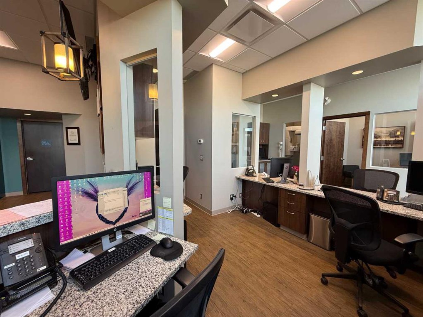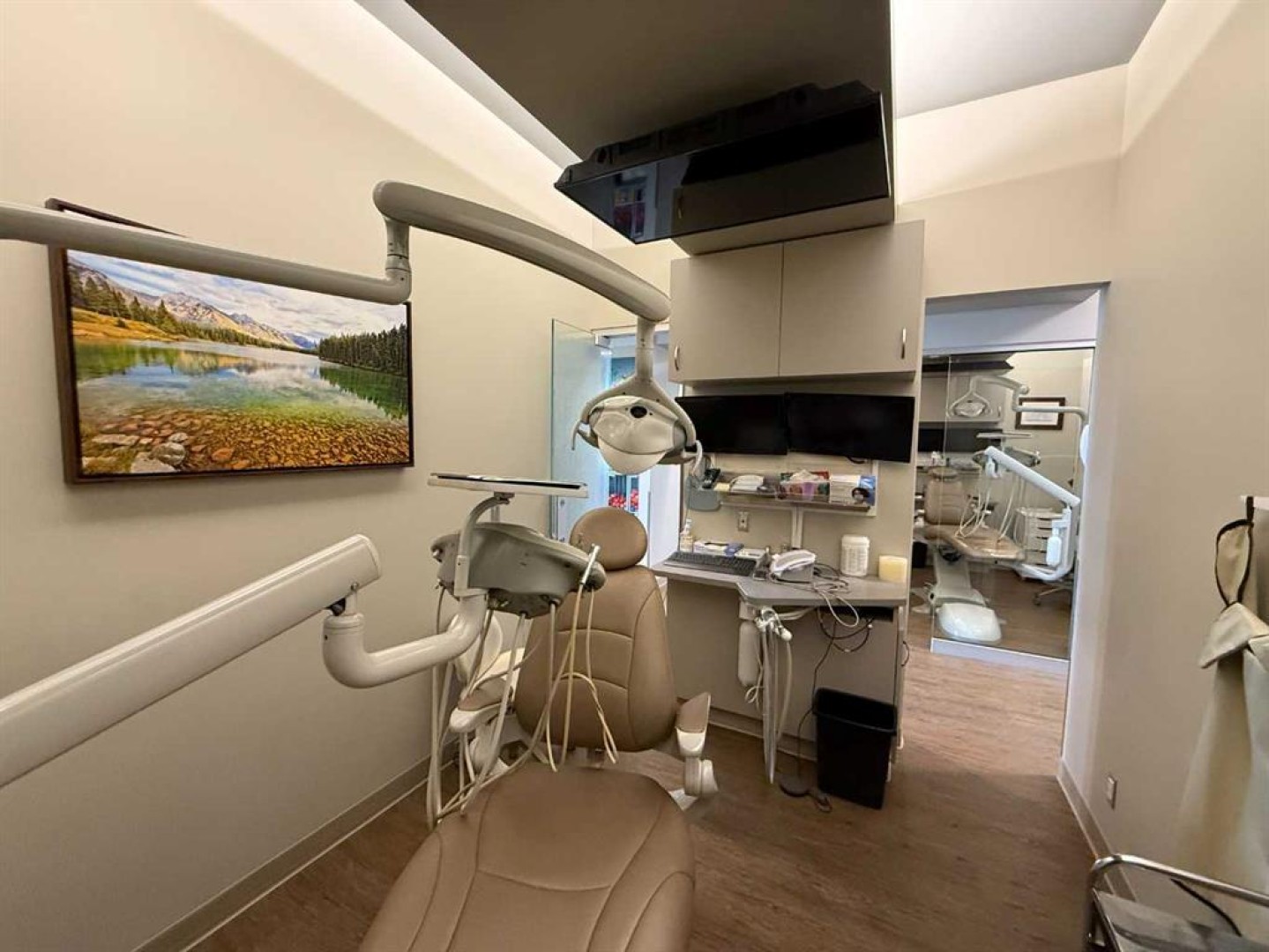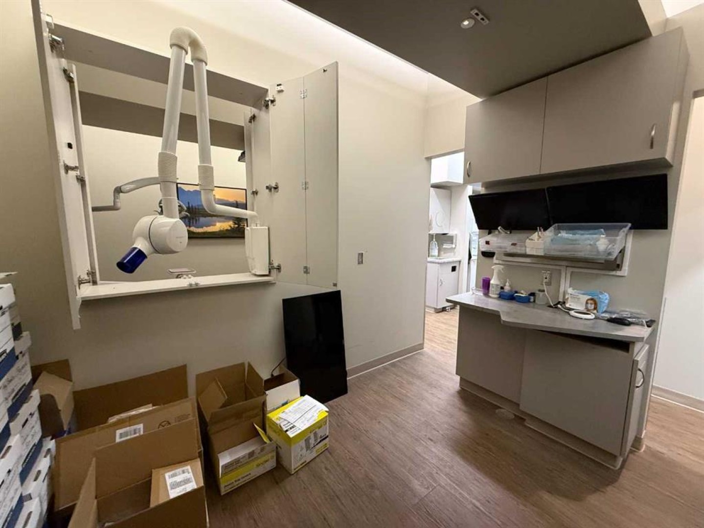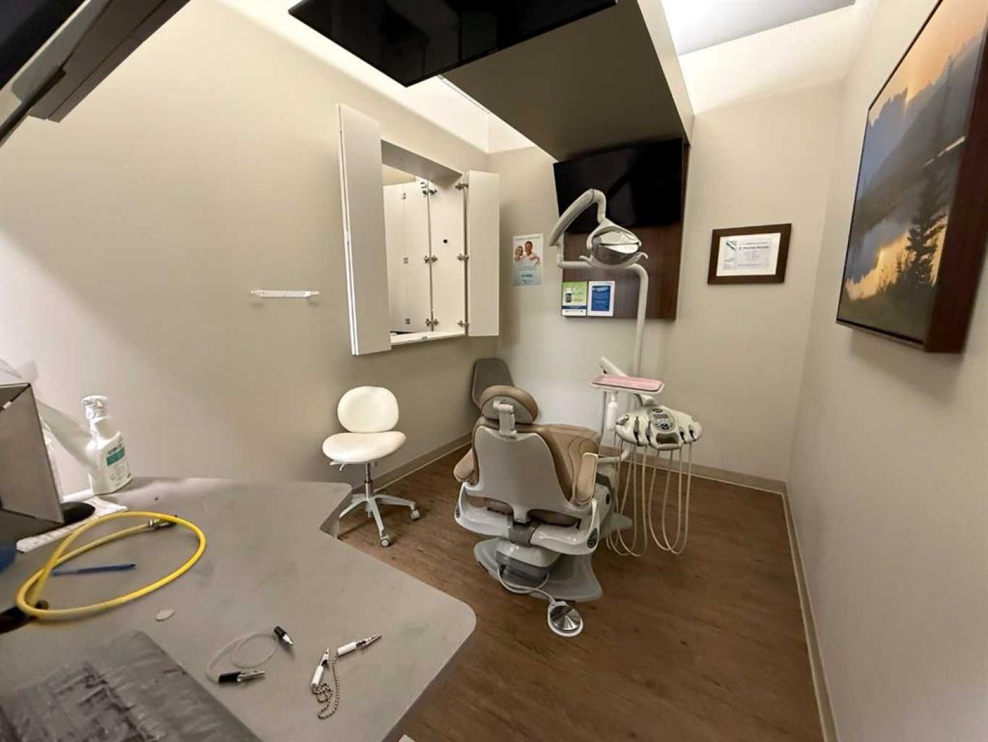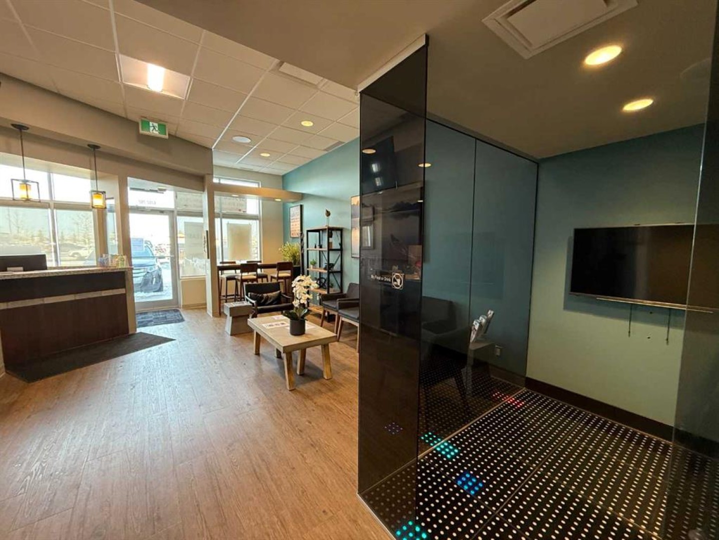 Exceptional opportunity to lease a fully equipped medical suite in Golden West Plaza, located at the prominent corner of 67th Street and Johnstone Drive. This modern, well-maintained space offers immediate possession and comes complete with a full array of dental and medical furnishings, ideal for a practitioner seeking a seamless move-in experience. The unit features five patient rooms, each designed with passthrough cutouts for integrated equipment use, a dedicated X-ray room, and two private offices. A central sterilization corridor is outfitted with dental tools and ample storage. The reception area includes a functional front desk, a welcoming waiting area, and a children’s corner with interactive light-up flooring and a TV. Additional amenities include public and private washrooms, a fully outfitted staff lunchroom with stove, fridge, washer, and dryer. The office space incorporates modern design elements, including glass doors and quality finishes throughout. Located in a busy commercial hub with strong co-tenancy, including McDonald’s, Subway, Tommy Guns, Esso, State & Main, Jiffy Lube, and Ricky’s. This is a rare turn-key opportunity for dental or medical professionals in a high-exposure, service-oriented plaza. Additional rent is $18.00 PSF, (doesn't include utilities)
