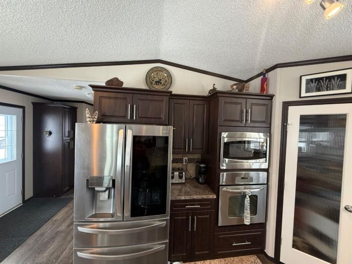 This well-maintained 2013 manufactured home offers spacious living with bright, open rooms and large windows that capture beautiful views wherever you choose to place it. In like-new condition, this home has been cared for with pride and is ready for its next location. You’ll love the thoughtfully designed laundry room, featuring built-in cabinets, a utility sink, and abundant storage. The kitchen is a standout, equipped with upgraded appliances and a stunning LG refrigerator—purchased just a year ago—with dual ice makers and an InstaView panel. A generously sized island provides ample counter space and includes a built-in cooktop, making meal prep easy and enjoyable. Large corner pantry will provide you with lots of storage. With 3 comfortably sized bedrooms and 2 full bathrooms, this home offers plenty of room to relax, work, and entertain. The hitch is ready, and the owners will ensure all utilities are disconnected so the home is ready to roll to your land or community of choice. Don’t miss this opportunity to make a beautifully maintained, modern home your own!