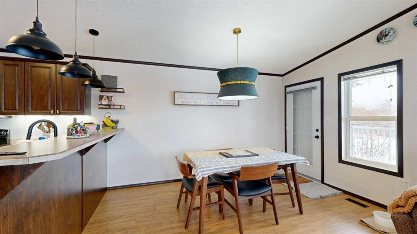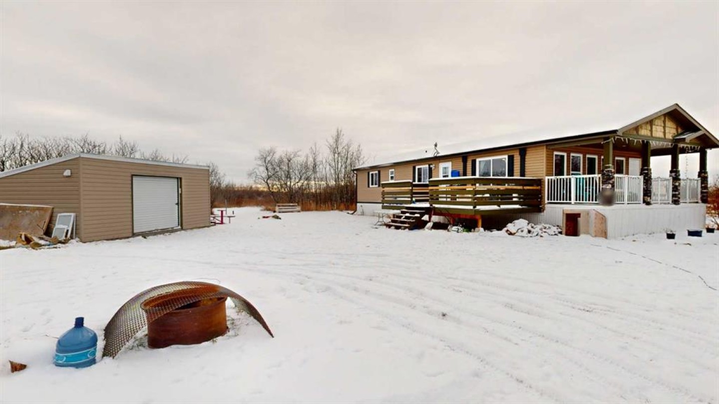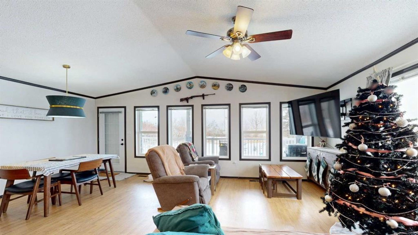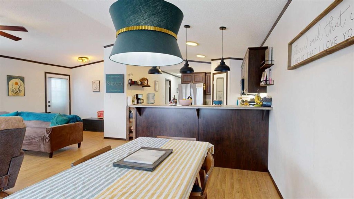 This charming home, located in the peaceful village of Gadsby, sits on a 0.64-acre lot that provides plenty of privacy and outdoor space to enjoy. The home offers a bright, spacious, and well-designed living environment suited for families, retirees, or anyone seeking a slower pace of life. There is a generous sized deck leading up to the main entrance, with space for all your deck furniture. Inside, the living room immediately impresses with a vaulted ceiling and windows across the front wall, creating an open and welcoming atmosphere filled with natural light. Adjacent to this is the dining area with direct access to another deck, making indoor–outdoor living effortless. The modern kitchen is both stylish and highly functional, featuring rich dark wood cabinetry, stainless steel appliances, a corner pantry, and a tiered peninsula with seating—perfect for casual meals or morning coffee. Pendant lighting above the counter adds warmth and visual appeal. The primary bedroom includes two closets and a spacious ensuite with double sinks and a round corner tub/shower. Two additional bedrooms offer flexibility for family, guests, or a home office, while the main bathroom with tub/shower serves the household comfortably. The side entrance doubles as a laundry room and has access to a third deck. Upgrades to the home include shingles and siding (2019), hot water heater (2021), washer, dryer, and dishwasher (2022), furnace and fridge (2023), and updated lighting. The yard is partially fenced and includes two storage sheds, a greenhouse, and raised planter boxes, making it ideal for gardening, hobbies, or simply relaxing in a quiet country setting. This layout maximizes space while blending practicality with inviting design, making this a wonderful opportunity to enjoy quiet country living in a friendly rural community.