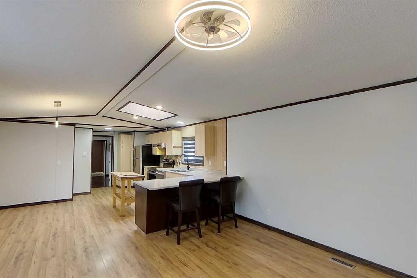 Wow, step into this beautiful remodeled 3 bdrm. mobile with a host of ugrades throughout that provides modern living and security knowing you can move right in. Big beautiful kitchen with loads of storage in the custom cabinets, big dining area, custom blinds, and a stylish primary ensuite with a barn door closet, huge 4 pce ensuite bath. The yard is fully fenced in the finest craftmanship featuring a large gate to bring a vehicle or trailer in, a large dog run area, and separately fenced yard with large trees, and custom built garden boxes. All you need to do here is move in, possession can be quick, this is a beauty.