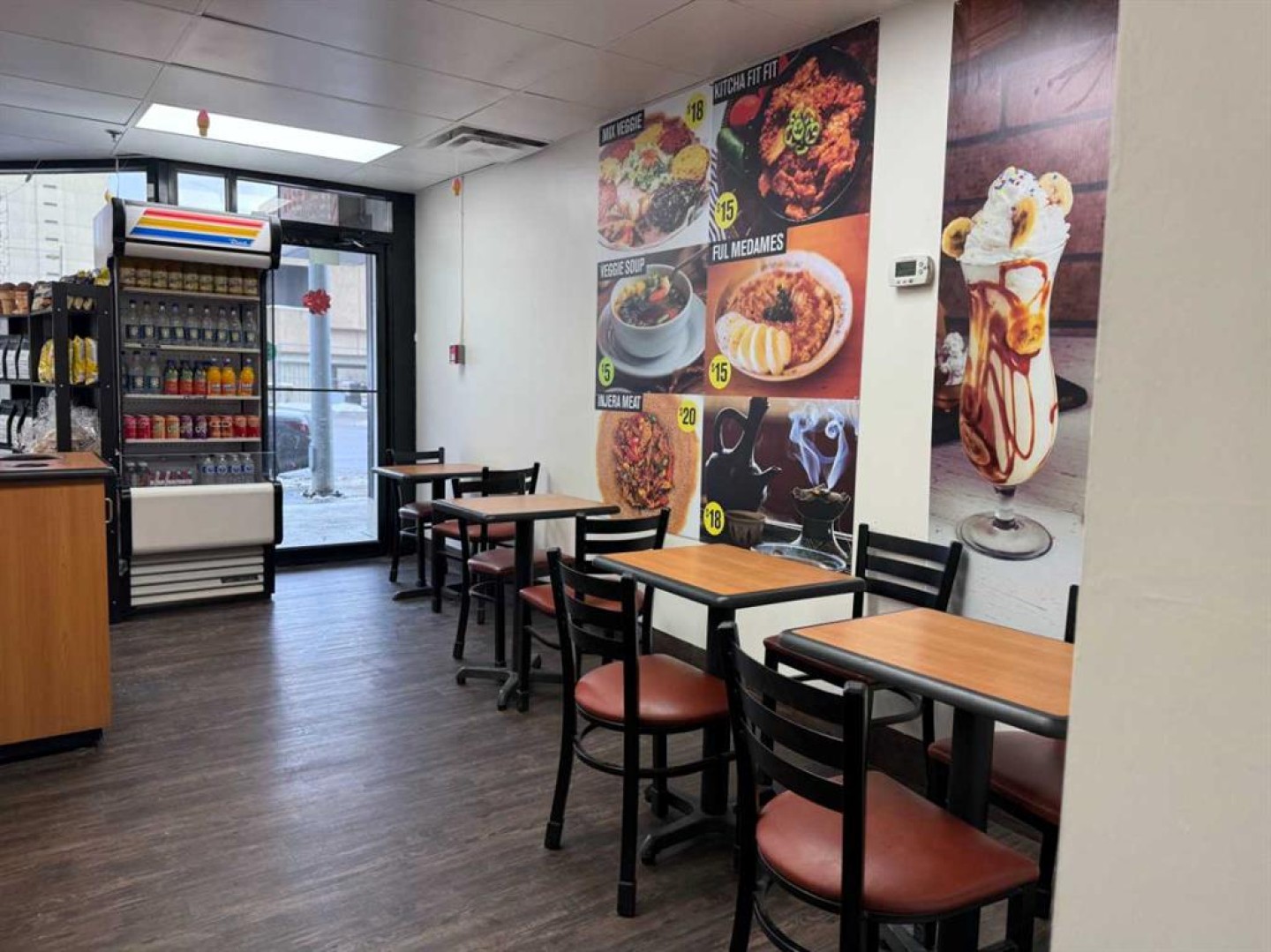 Coffee ,Ice Cream, Sandwiches, Lease amount $1740 per month includes common area Condo Fee's, 56 months left on Lease. located on busy 6 th. Ave downtown corridor. Strategically located between Chinatown and the high density East Village. At the base of a 300 unit residential building Close to Public Library, Redeveloping Olympic Plaza, Bow Valley College. Good visibility and pedestrian traffic. {Asset and Equipment Sale} Business opened 3 months ago and is profitable. Great opportunity to grow the business. The owner is selling shortly after opening due to family circumstances, Free parking for six months in the underground heated parking. Seller may train the new owner.