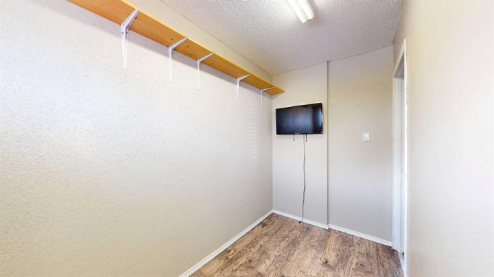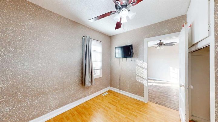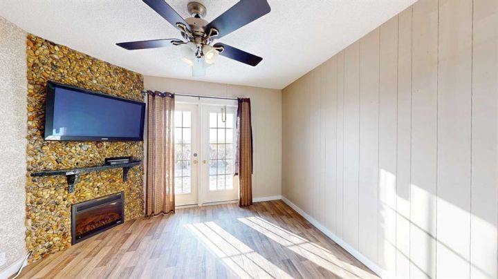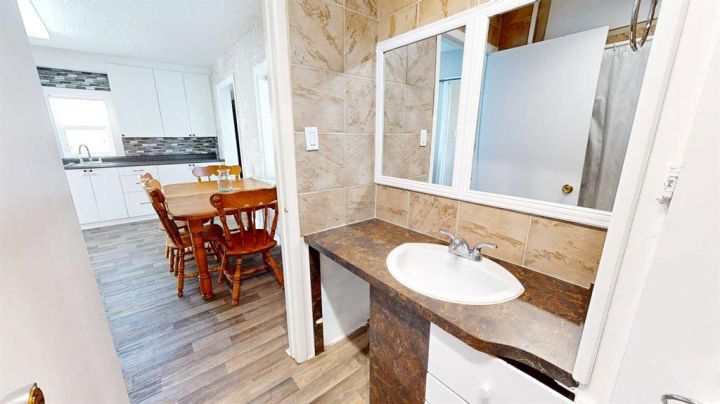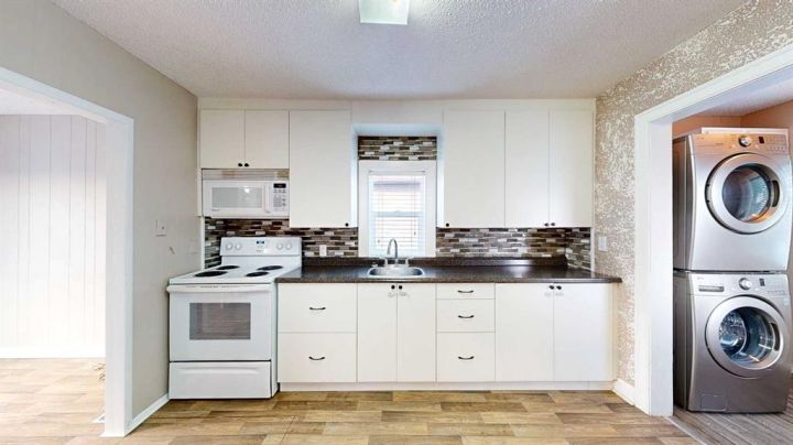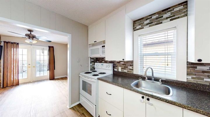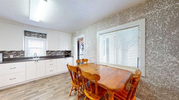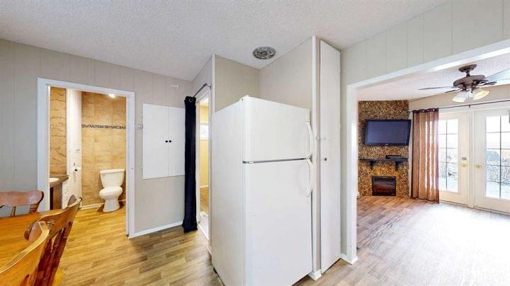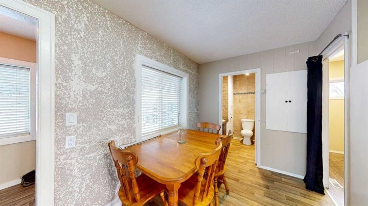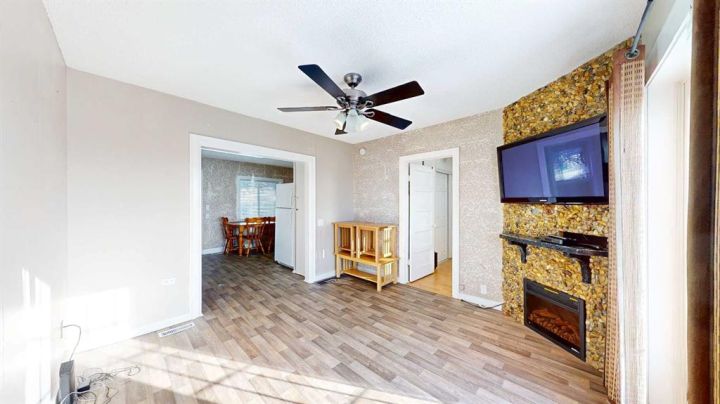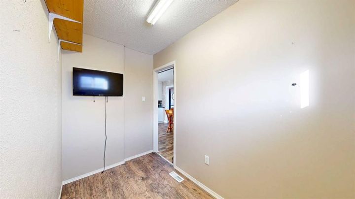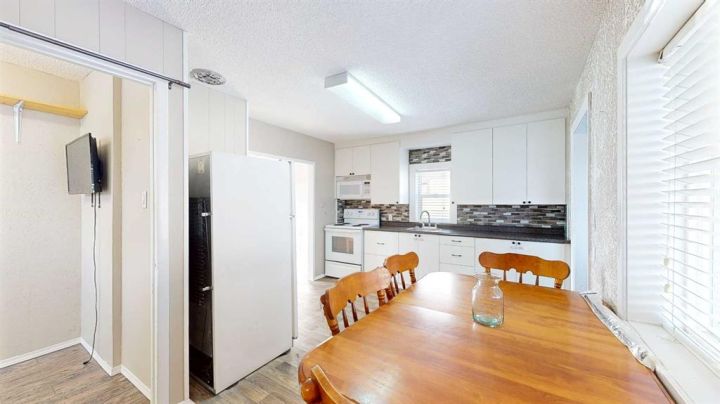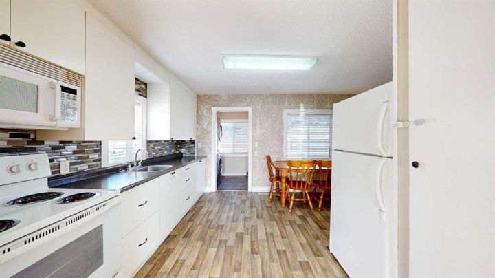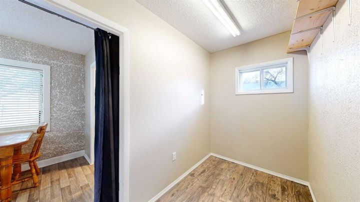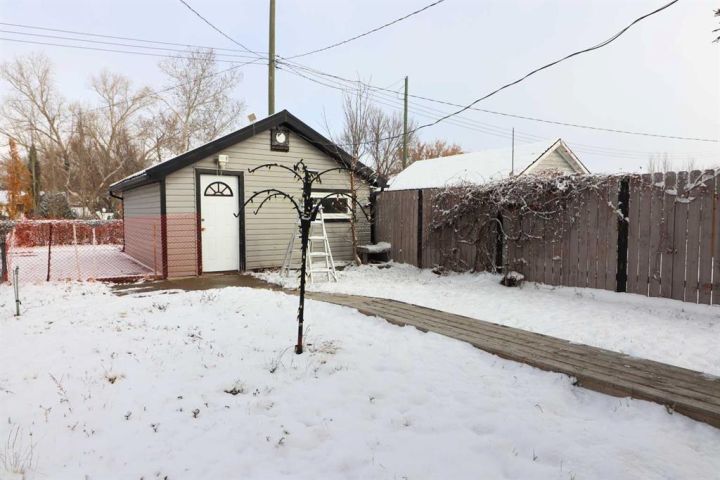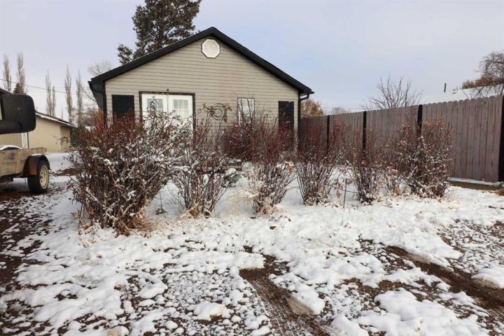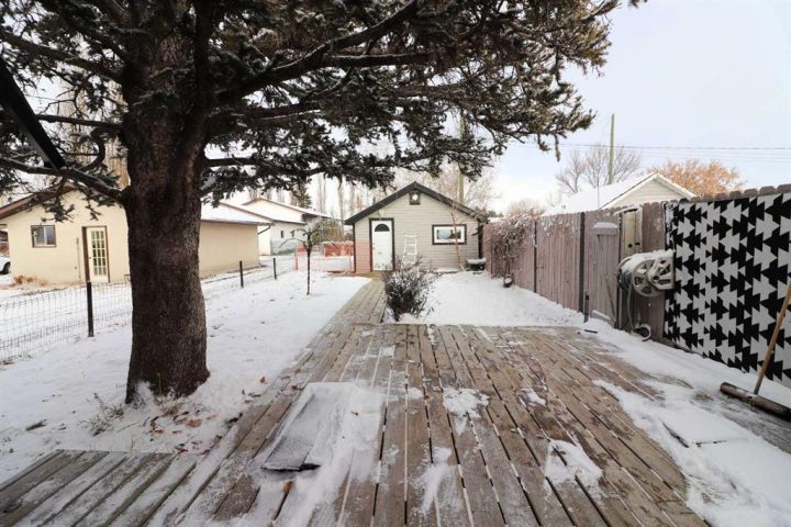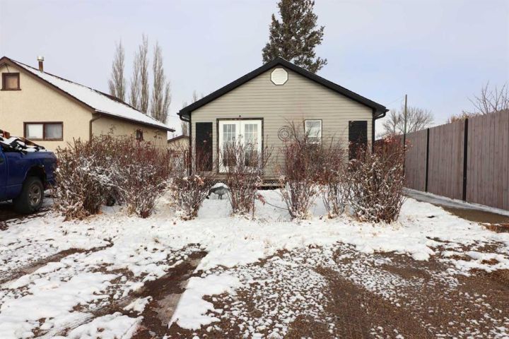 Welcome to this cozy bungalow nestled in the quiet town of Schuler. This well-kept home features 1 bedroom and a 4-piece bathroom complete with a relaxing jetted tub. A versatile bonus room can serve as an office or easily be converted into a second bedroom. The open-concept layout connects the kitchen, dining area, and living room, creating a bright and inviting space perfect for spending quality time with family and friends. Garden doors off the living room lead to a raised front deck—an ideal spot to enjoy peaceful views and unwind. A raised patio in the back offers another great place to relax outdoors. The property also includes an 18'5" x 16'5" shed, providing plenty of storage, and a small fenced backyard that’s perfect for children or pets to play safely. A charming home in a tranquil setting—perfect for those seeking comfort and quiet. Resent updates include new shingles and upgraded electrical panel.