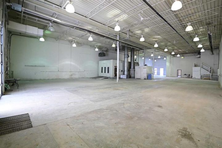 This Warehouse can accommodate semi-retail or industrial usage. The Landlord is interested in another autobody shop, if possible, but he will consider any other use as well, such as a sports complex or religious use, etc. The celing height is 21'.00, there are two driving doors at the rear of each of the bays of 10' X 14', and two man doors - The available electrical power is 100 Amps per bay with 600 volts. These bays also offer an HVAC and a smaller mezzanine of 455 sq ft; There are 4 assigned stalls at the front of the building, and a large parking lot at the rear.