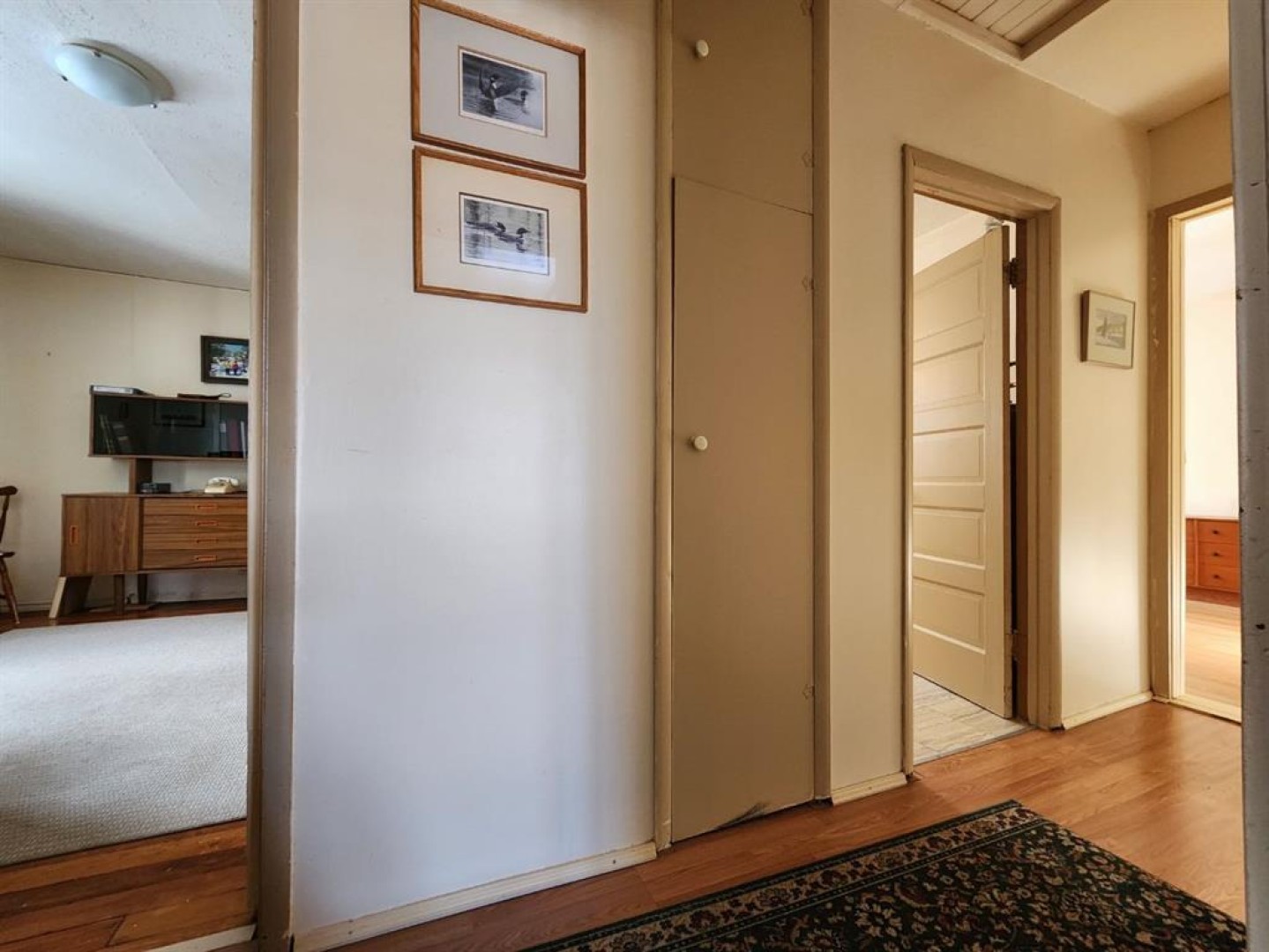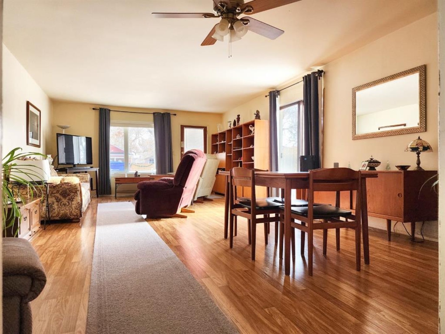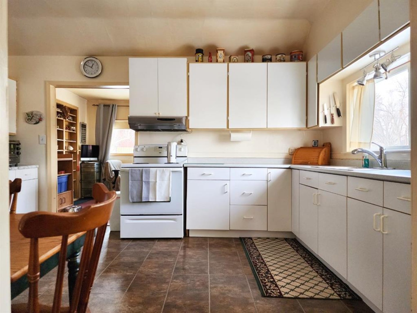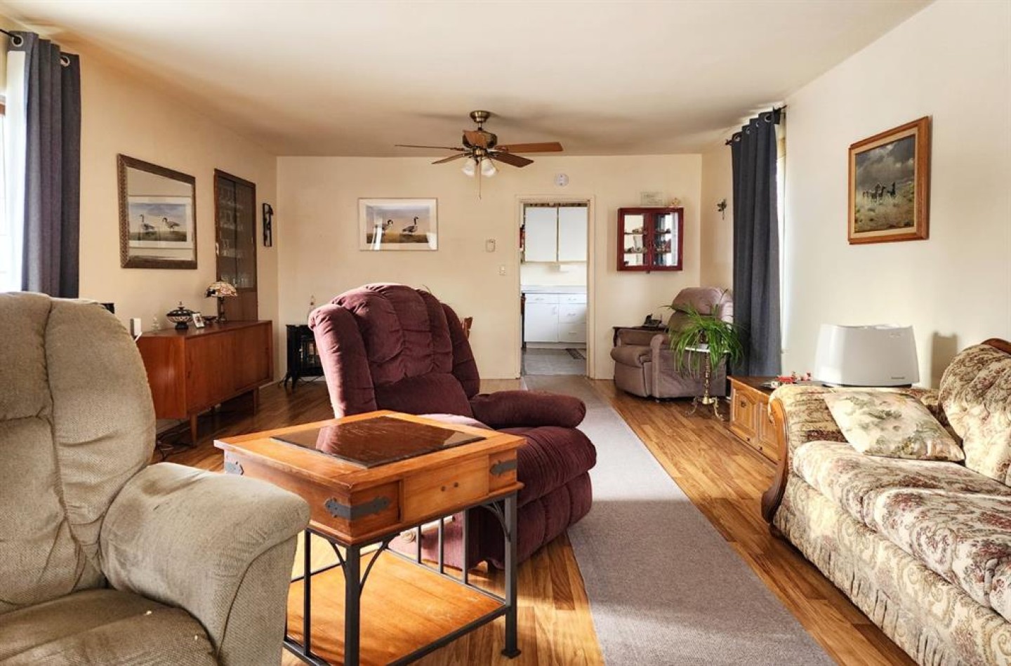 This affordable, well-maintained single-level bungalow offers approximately 1,262 sq. ft. of comfortable living space with 2 bedrooms and 1 bathroom—ideal for seniors, retirees, or young families. Step inside to a bright and spacious living and dining area featuring a charming built-in china cabinet. The kitchen offers white cabinetry and a cozy dining area, perfect for everyday meals. Just off the kitchen are two well-sized bedrooms and a four-piece bathroom. The main level is completed by a large laundry, boot, coat, and storage room conveniently located off the back entrance. Additional highlights include a detached garage, some updated windows, and a spacious lot. Located in the welcoming Town of Claresholm—known for its small-town charm, excellent schools, hospital, golf course, and strong sense of community—this home is set in a quiet area with a fully fenced yard and mature trees providing privacy and a peaceful outdoor setting. Enjoy the convenience of being close to downtown, schools, local restaurants, shops, parks, the public library, and all amenities.