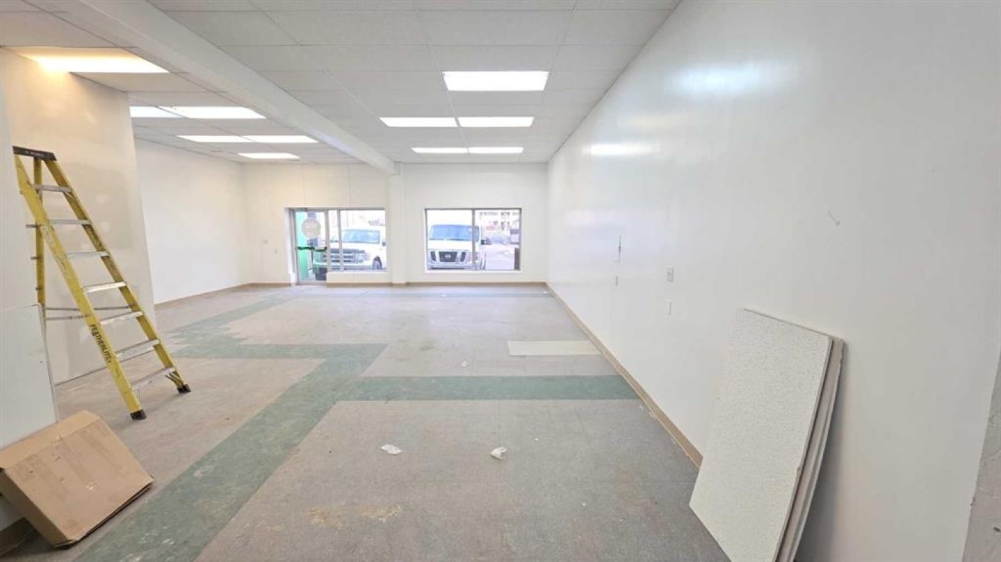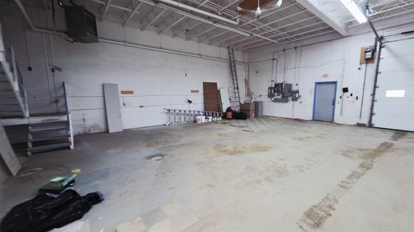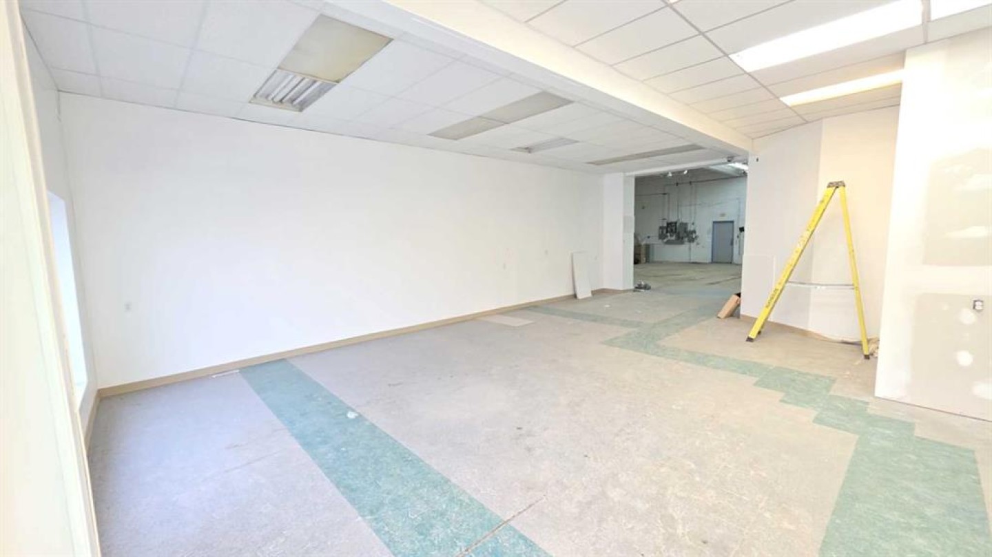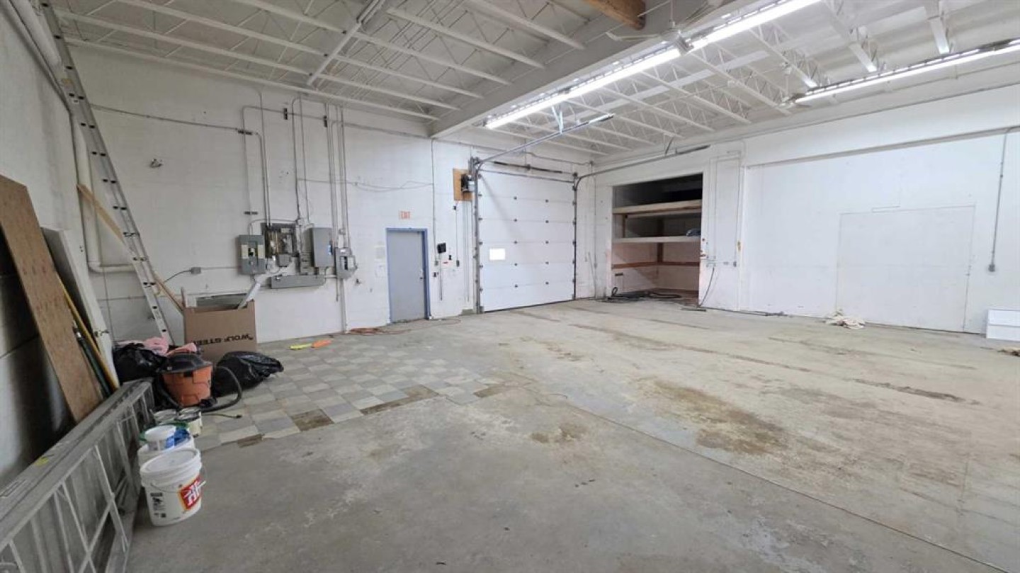 This is a great option for the small service company to set up operations - with a 12 X 12 overhead door in the back for access it makes a very useful area for operations, The front reception area is about 30 X 25, there is a mezzanine area for small parts or general storage, a 2 piece bathroom and a kitchen area. Great location on main street with a general parking area in front. At just under 1500 sq ft of space you have an abundance of space for storage, vehicle and reception all ready for you.