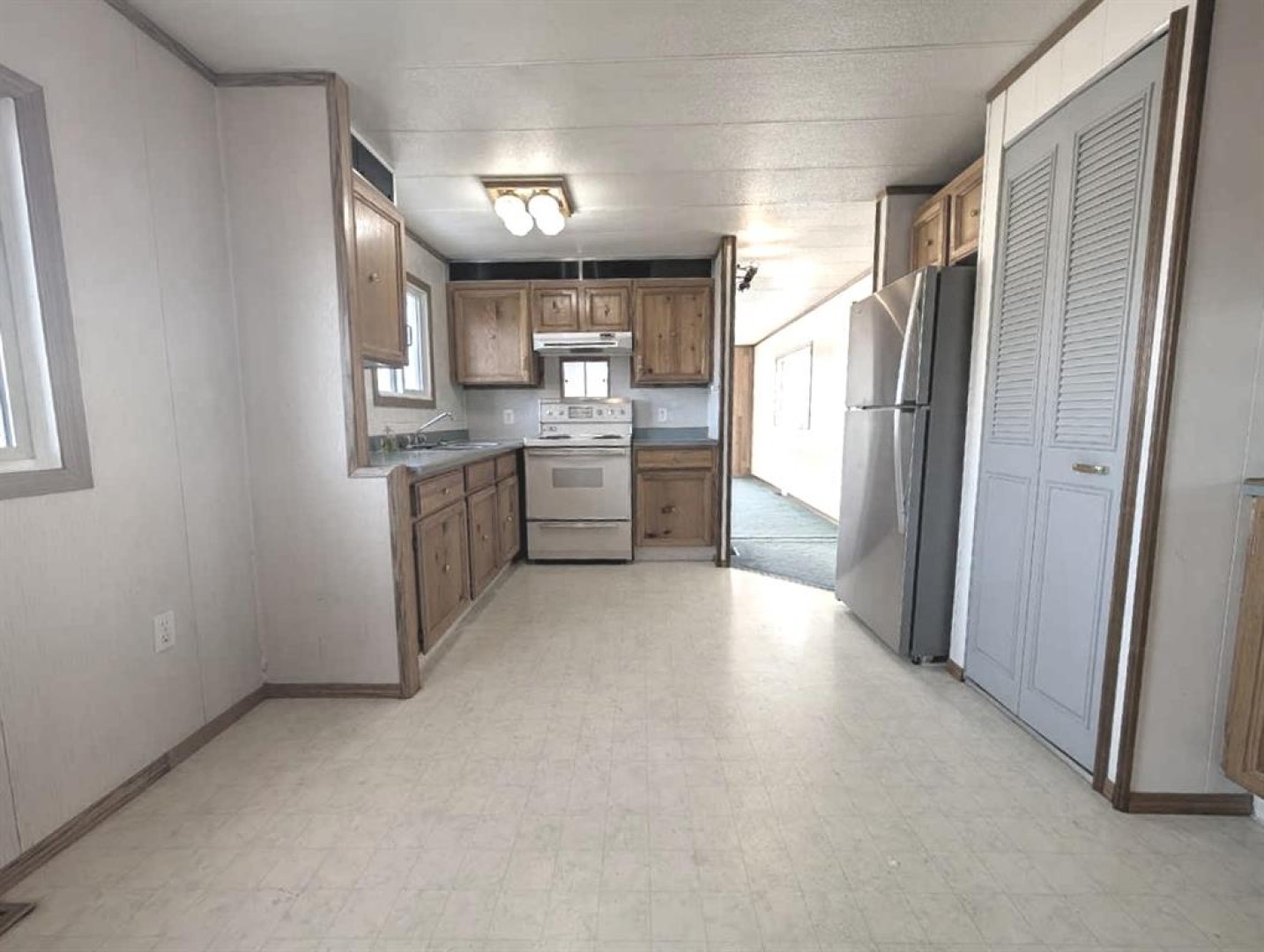 Welcome to affordable home ownership at 413 4th Street in Suffield. This 3 bedroom manufactured home sits on its own land with two lots included, offering space, privacy, and excellent value in a quiet prairie community. Inside, the home features a spacious living room, a functional kitchen with dining area, a generous primary bedroom, two additional bedrooms, and a full 4 piece bathroom. Most of the windows have been updated to vinyl, adding efficiency and comfort. The layout is practical and easy to live in, making this a great option for first time buyers, retirees, or anyone looking to simplify while still owning their own property. Affordability is a true highlight here. Property taxes are under $300 per year, making ownership extremely manageable. Suffield offers a peaceful small town setting while being just a short drive to Medicine Hat and Redcliff, where you will find shopping, services, and the regional hospital. If you are looking for an affordable home on owned land, room to breathe, and close proximity to city amenities without city prices, this is an opportunity worth exploring. Call your local agent to book a private showing today and see the value Suffield has to offer. Digital staging has been used in some photos to showcase the potential of the space and help illustrate possible furniture placement and layout options.