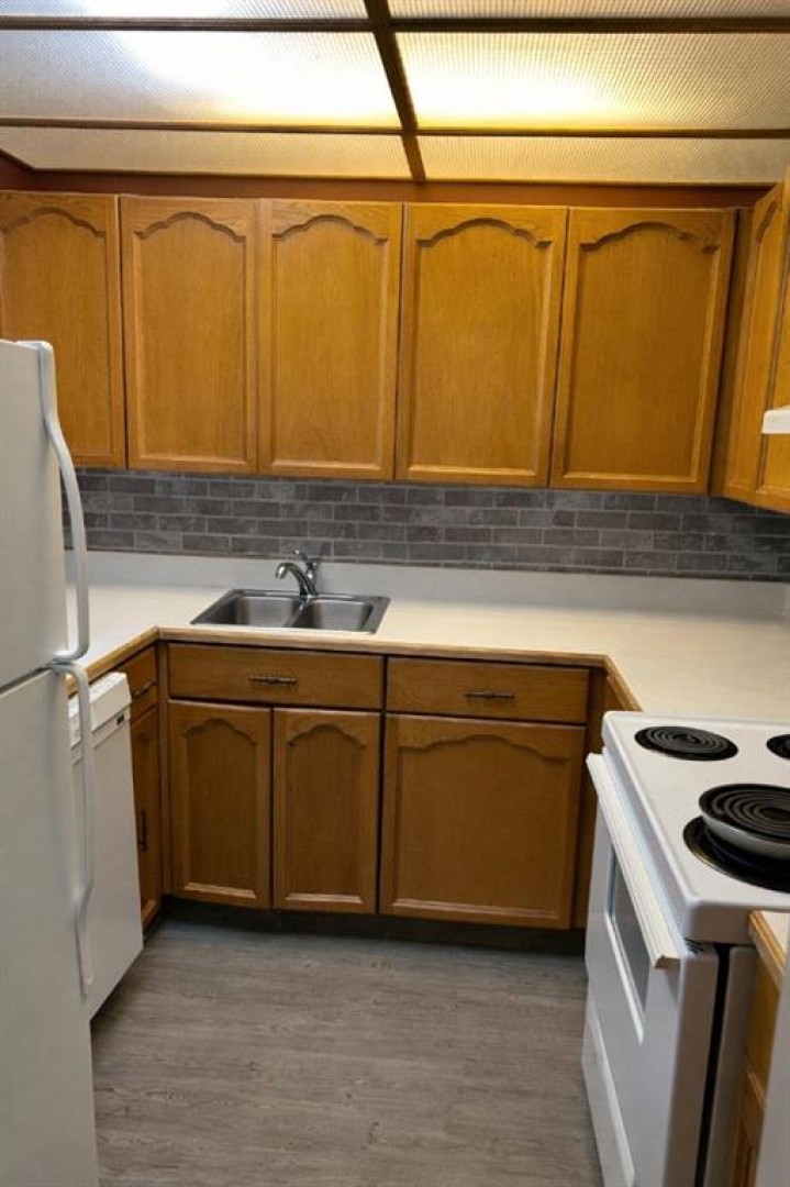 45+ Brodie Manor condominium apartment lifestyle living. Ground floor unit steps away from front doors. . Layout includes kitchen area , dining space, spacious living room, two bedrooms and 3 piece bath. There is a shared laundry just down the hall. You can install your own laundry in the unit with Board approval. Pet allowed but some restrictions. Bus stop out front and Resources Road flows north south just to the east off 92 Avenue which also spills onto main 100th street for north south downtown access. Brodie Manor has additional storage areas to inquire about plus a 3rd floor common area to entertain and a fitness area to enjoy as well. Condominium fees cover assigned parking stall, heat, water, sewer, garbage, snow removal, grounds maintenance, building insurance, and reserve fund contributions.