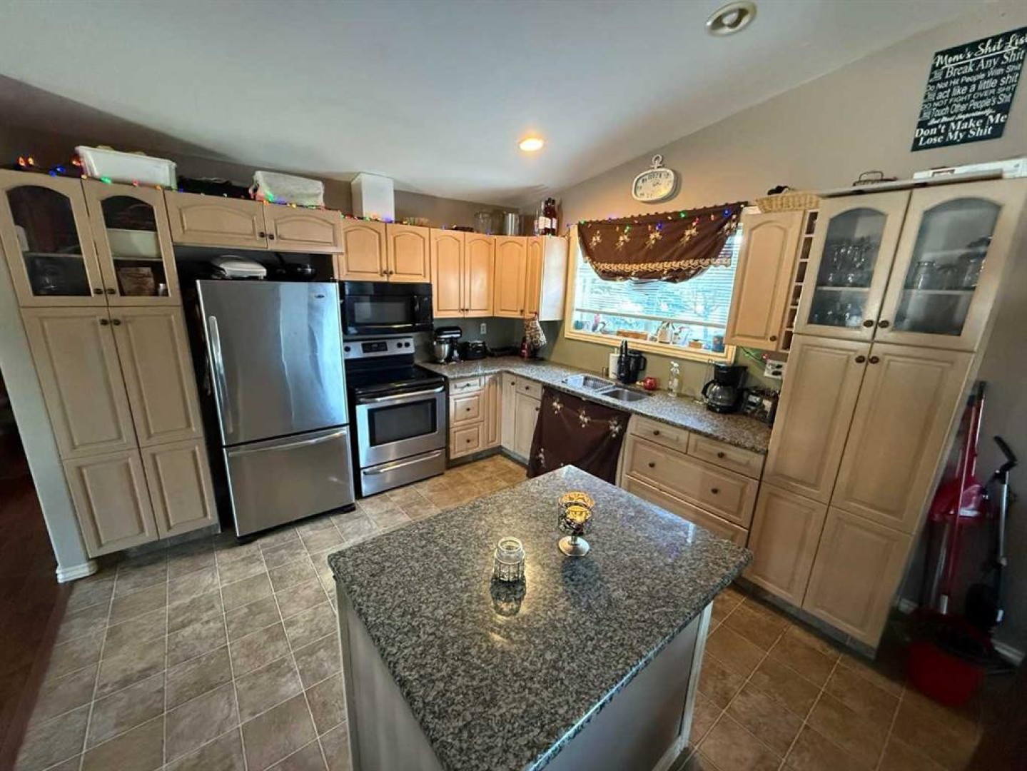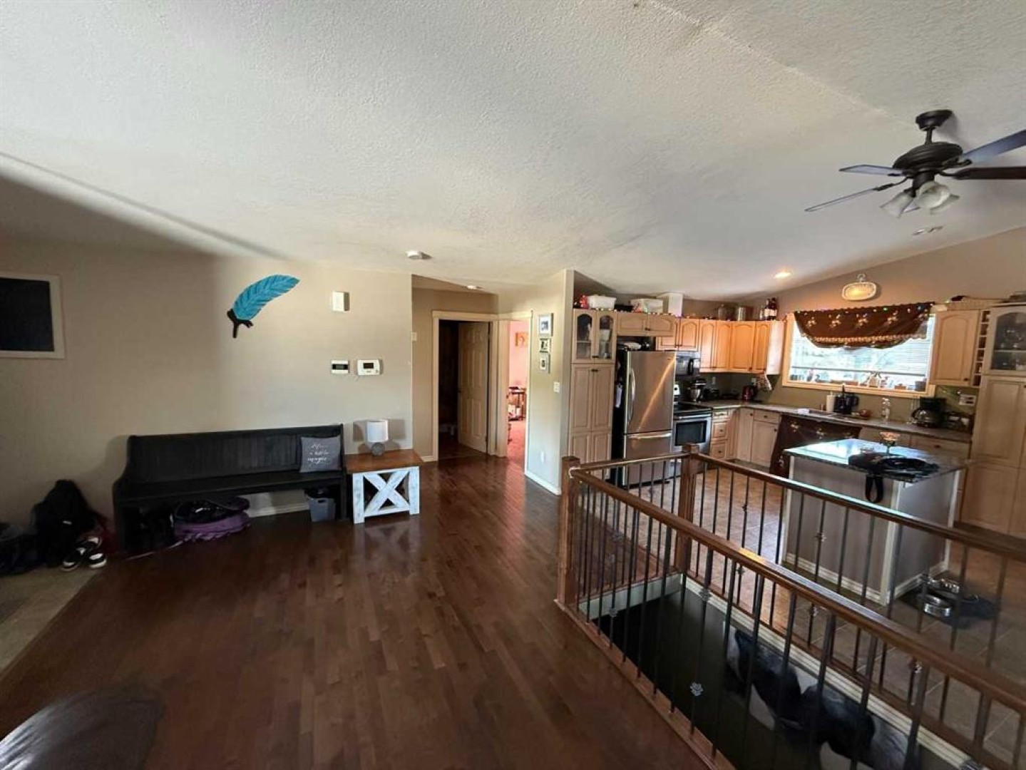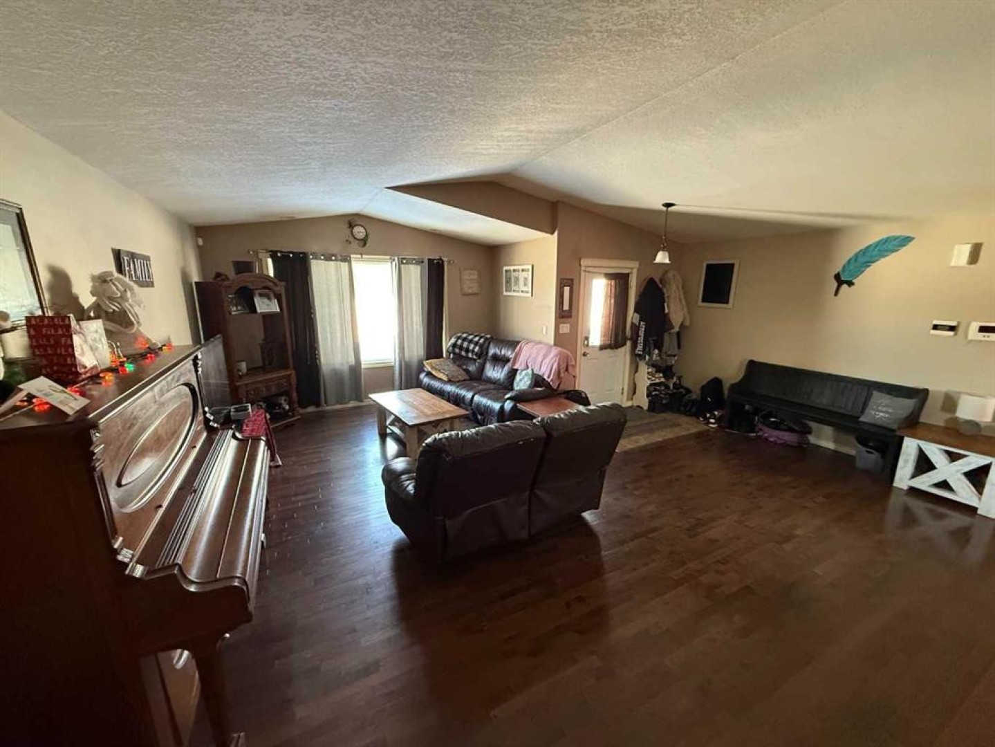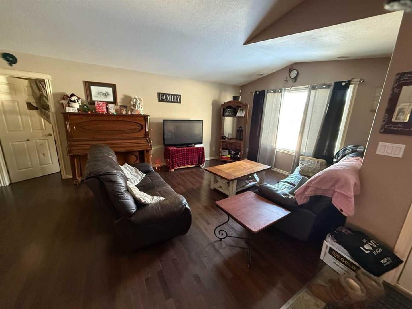 Perched up on a hill, this 2009-built home in Swan Hills offers space, light, and solid bones—making it one of the newer builds in town and a great option for buyers looking for room to grow. The main floor is bright and open, with tall ceilings and large windows that flood the space with natural light. Hardwood floors run through the living area and primary bedroom, while the layout flows seamlessly from the kitchen with island and granite countertops, to the dining area, and out onto the covered 12’ x 7’ back deck—ideal for entertaining or quiet evenings outdoors. A front verandah adds another welcoming outdoor space and takes advantage of the elevated setting. There are three generous bedrooms on the main floor, including a primary suite with a 4-piece ensuite featuring a stand-up shower and corner soaker tub. The remaining two bedrooms are comfortably sized and carpeted, with a full 4-piece main bathroom nearby. Downstairs, the basement features 9’ ceilings, two large bedrooms with laminate flooring, and plenty of undeveloped space ready for your vision. Laundry is also conveniently located on the lower level. All interior walls are insulated for sound, adding comfort and privacy throughout the home. The property offers room to build a 24’ x 24’ garage, adding even more value and flexibility. The home does need some touch-ups—some trim, some interior doors, and replacement of the ensuite shower—which is reflected in the price and presents an excellent opportunity to add equity. A solid home with great layout, natural light, and entertaining space—just waiting for the right touch to make it shine.