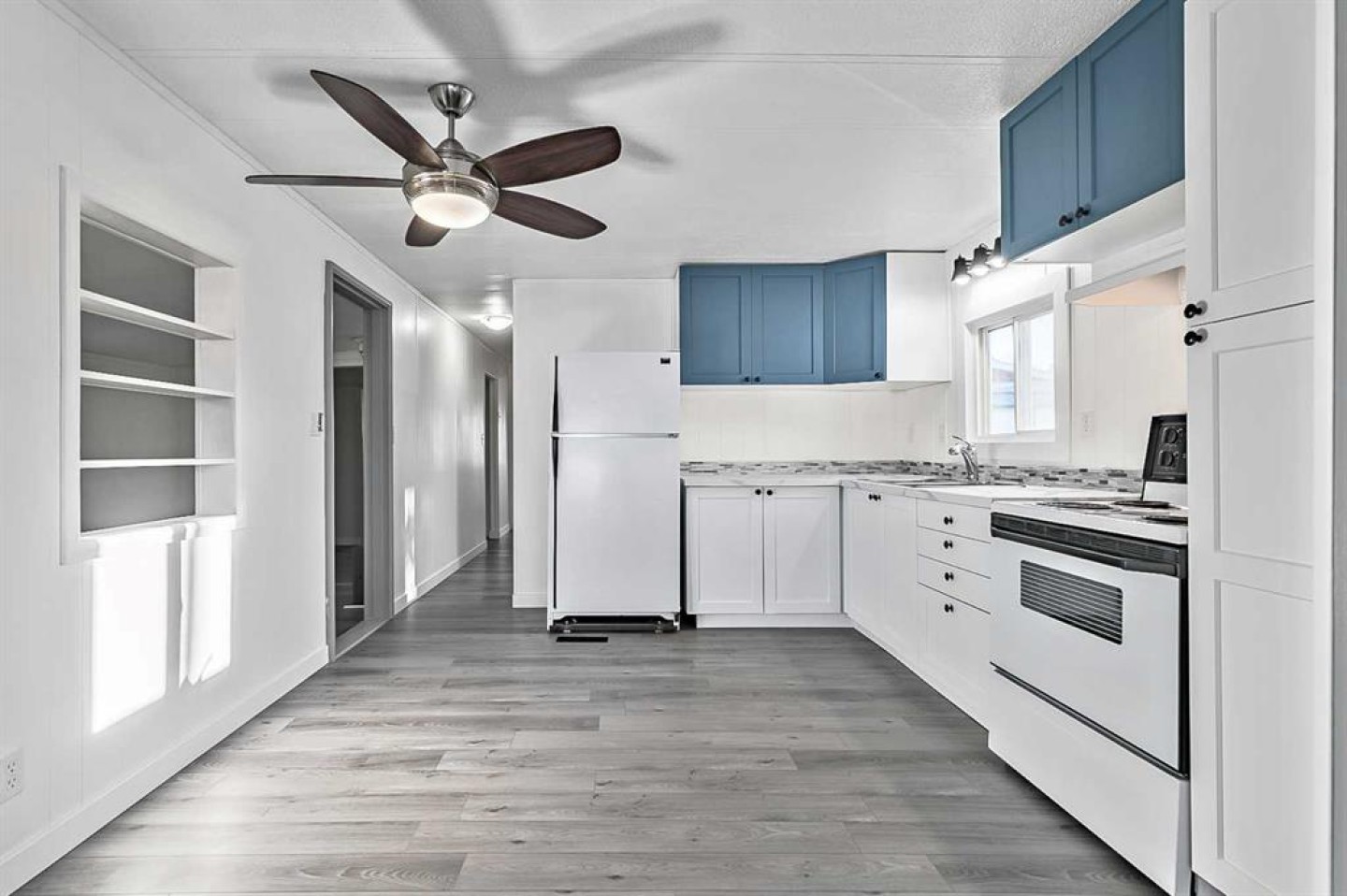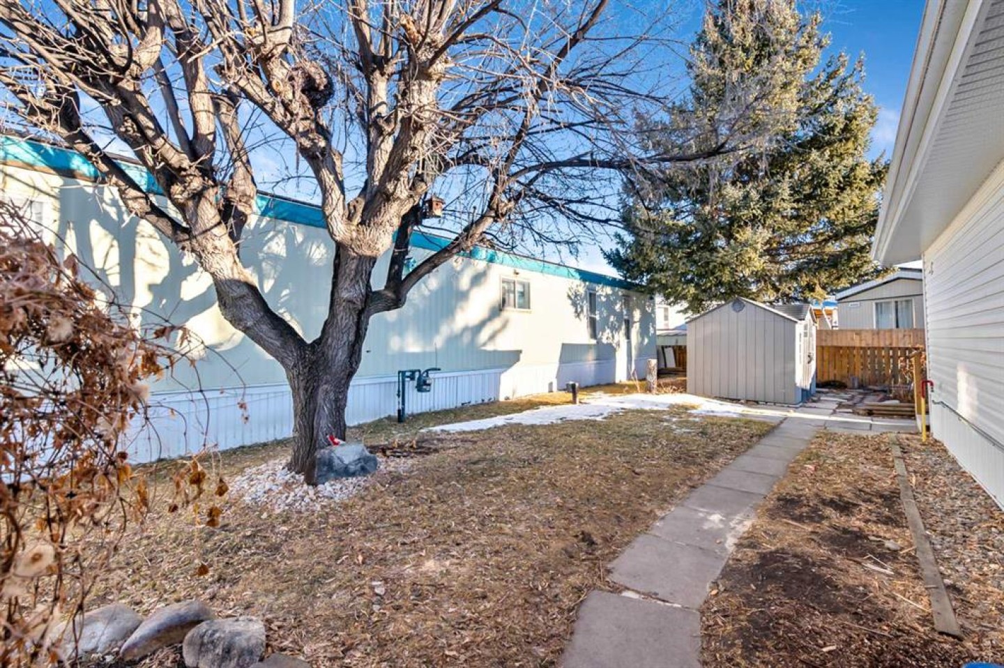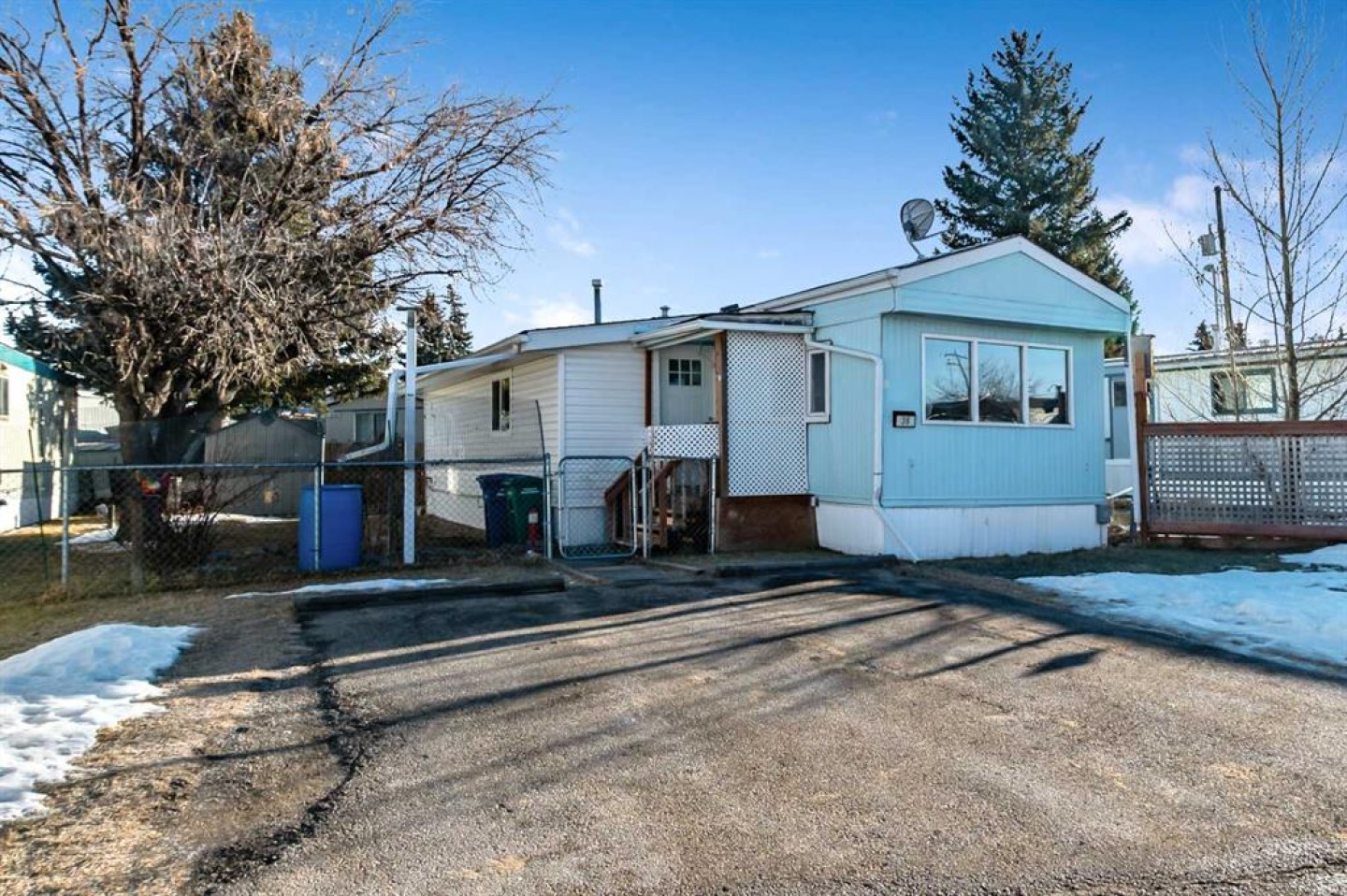 Welcome to Trails West Mobile Home Park located in the lovely community of Diamond Valley! This affordable mobile home is cute as a button and has just been renovated with a fabulous new kitchen, brand new flooring through out the unit, some windows have been replaced, new light fixtures, renovated 4-piece bathroom with laundry hook ups, and every room has been freshly painted. The furnace was replaced in 2021, and the roof shingles were replaced in 2018. There is a covered front porch leading to the generous heated addition that has also been renovated and freshly painted. The main bedroom is located at the rear of the mobile and there are 2 rooms that could possibly be used as bedrooms if a door and closet were added. The lovely private yard is fully fenced and has a newer Costco shed. Located in walking distance to stores, restaurants, hospital, medical clinic, schools and most other amenities. Move in and enjoy this move in ready home with affordable pad rent of $550 per month, which includes water, sewer, and garbage collection.