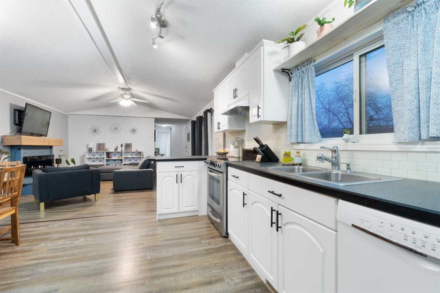Bright and Open. This family has been updating this home. In the summer of 2025, the roof was redone professionally, and a new living room glass was installed in January. The kitchen cabinets were repainted, floors replaced, and some appliances are also recent. The living room includes a cozy electric fireplace with a mantel. Calm and relaxing colours. The primary bedroom features a walk-in closet and an en-suite bathroom with a large soaker tub adjacent to the separate water closet. Total of 3 bedrooms and 2 full baths. A fully fenced yard, located at the back of the cul-de-sac, is chain-link and is pie-shaped for a large backyard.