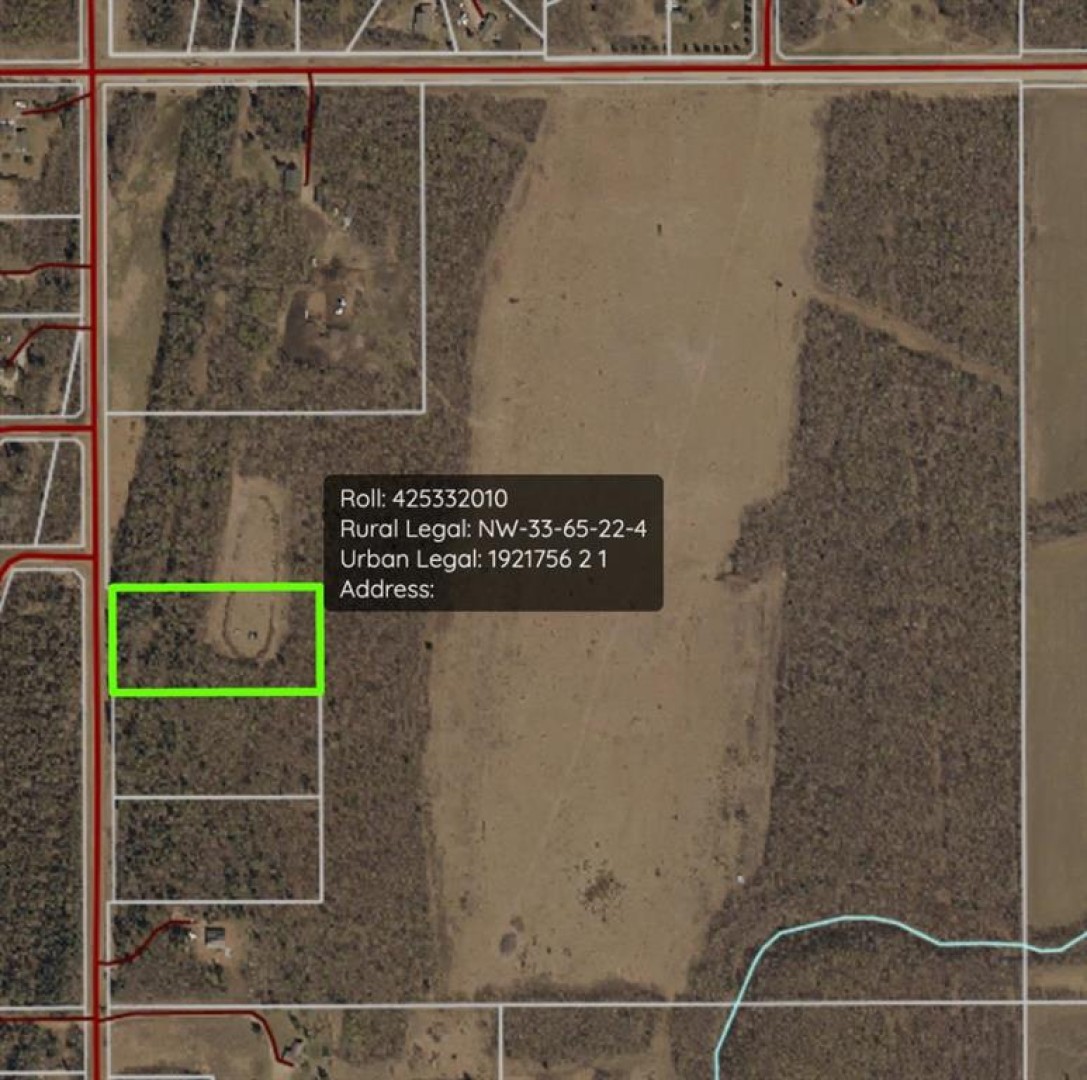 4.1 acres under 5 minutes to Athabasca, within walking distance to a 9 hole golf course and 480 acres of crown land for your enjoyment. Mostly mature spruce and poplar, with a large clearing approximately 1 acre ready to develop. 2 sheds come with the property, approach is already in, and survey pins marked. Power along the road. Ideal location on a dead end road with no through traffic. Price is plus GST.