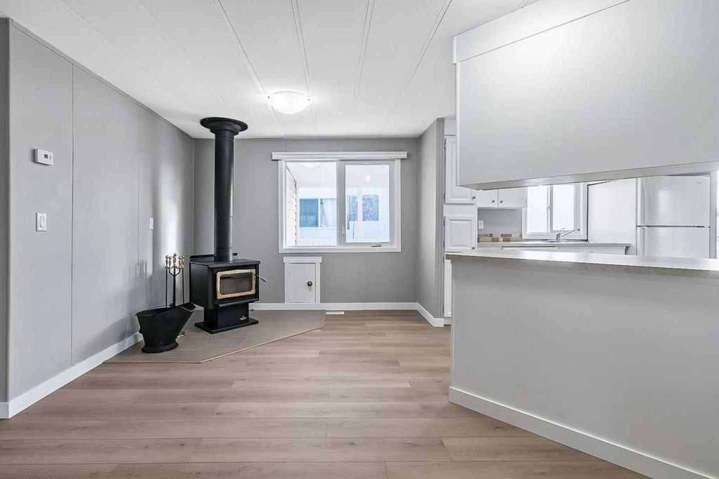 Welcome to this beautifully renovated, move-in-ready mobile home, boasting just over 1,400 square feet of living space and designed for comfortable, easy living with a bright and open feel. This bright and open-concept home offers 3 spacious bedrooms and 2 full bathrooms, including a large primary ensuite featuring a relaxing soaker tub and dual sinks. Large windows throughout fill the home with natural light, while generous closet space and abundant storage make everyday living easy and organized. A separate laundry room adds to the home’s thoughtful layout. Recent upgrades provide true peace of mind, with extensive renovations completed throughout, far too many to list. Major improvements include a new roof, new furnace, newer hot water tank, and a wood stove with current WETT inspection, perfect for cozy evenings at home. Outside, enjoy a large covered porch, fenced yard, storage shed, and a covered carport—the next best thing to a garage. The park itself offers excellent amenities such as a playground, RV storage, plenty of guest parking, and a welcoming, family-oriented atmosphere. Located close to schools, shopping, walking paths, and with easy highway access, this home delivers both tranquility and convenience. Don’t miss this opportunity to own a beautifully updated home in a fantastic location, schedule your private showing today!
