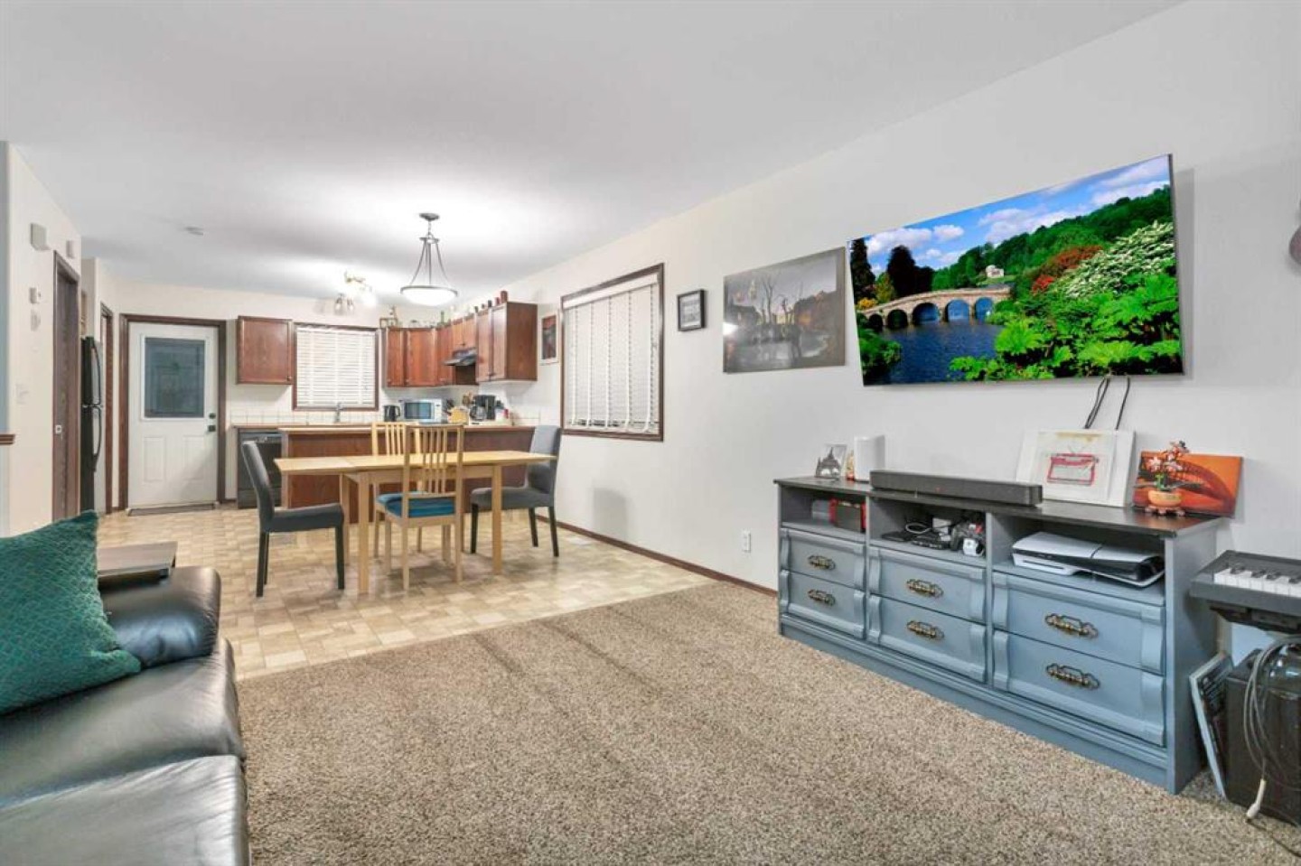 Homeownership starts on Garden Road. This sweet gem is a great place to call home, set in one of Lacombe’s most loved neighbourhoods. The curb appeal is immediate, with mature trees out front and a community pathway along the south side — a quiet, walkable setting that feels established and welcoming. Inside, the bi-level duplex offers an open main floor with a surprisingly roomy feel. The living space flows easily into the kitchen and dining area, with plenty of room for a full kitchen table. The U-shaped kitchen is well laid out, with generous cupboard and counter space, and the sink looks out over the backyard — always a bonus. The extra-long counter could easily double as casual seating with a few stools. Just off the back door, you’ll find a handy utility and coat closet, along with access to the sunny, east-facing deck. Tucked beside the kitchen is a convenient storage room and main floor laundry, plus a two-piece bathroom that makes everyday life that much easier. Downstairs, the basement is home to three bedrooms and a full four-piece bathroom. Large windows keep the space bright, while cozy carpet makes it comfortable year-round — warm in the winter, cool in the summer. There’s also additional storage neatly tucked under the stairs. Outside, the yard is mature and fully fenced, with trees in the front and a garden shed in the back — perfect for storage or weekend projects. Recent updates include a new furnace and hot water tank in 2024. A solid starting point, room to grow, and a location that’s hard to beat in a coveted Lacombe neighbourhood. Welcome home.