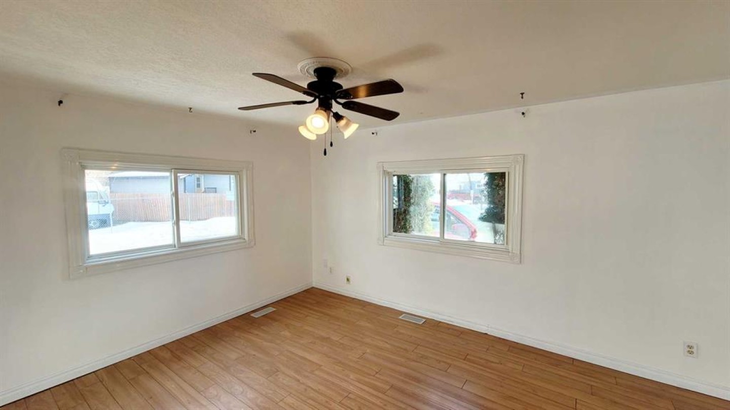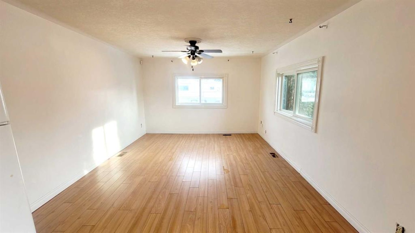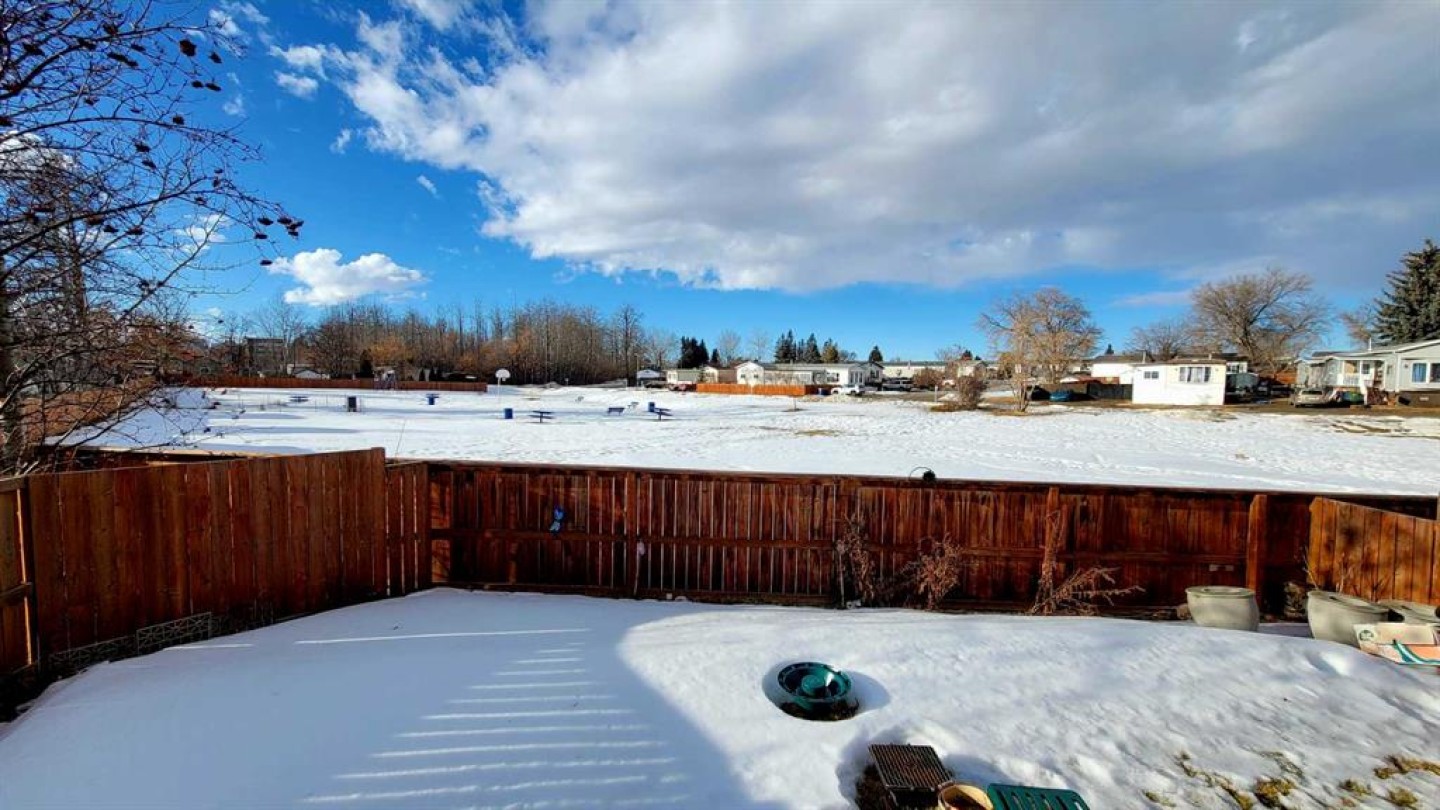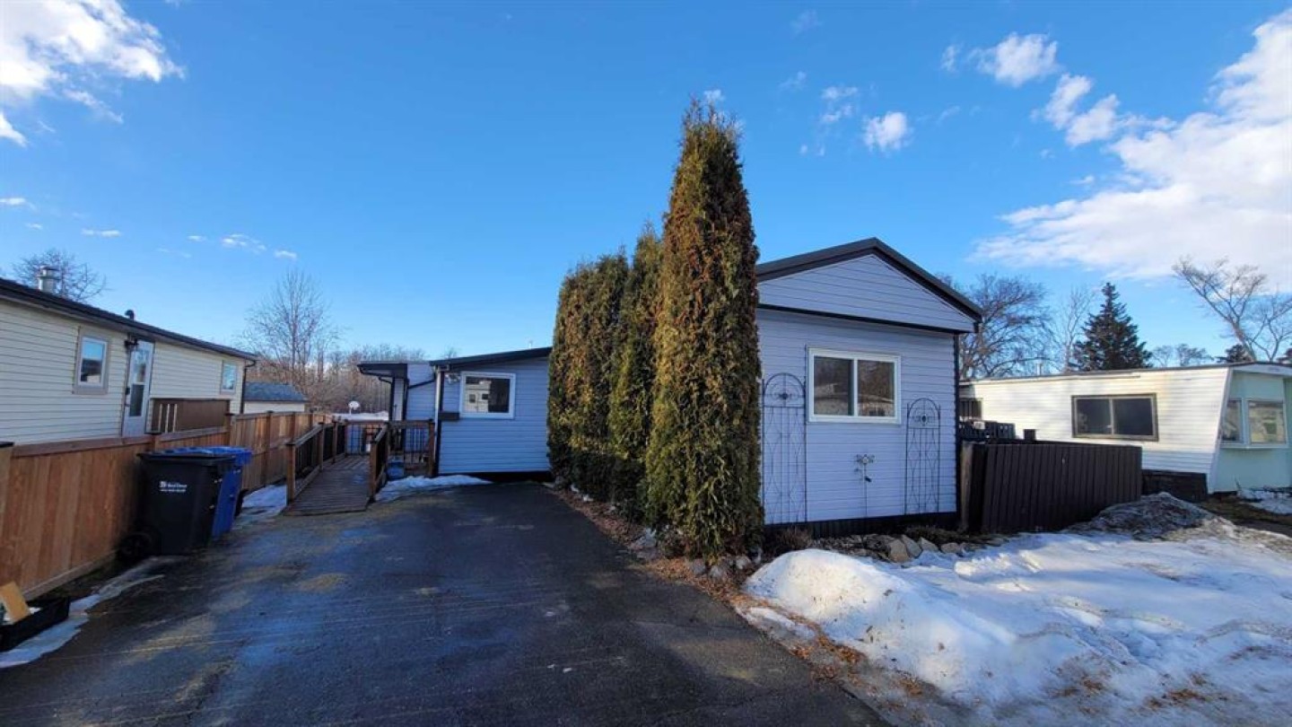 Located in one of Mustang Acres’ most desirable locations, backing directly onto a park and playground, this 1,218 sq. ft., 3 bedroom, 2 bathroom mobile home offers a functional layout, has seen several updates over the years, and provides excellent potential for the next owner. Notable additions include a spacious primary bedroom with a full 4-piece ensuite and a bonus family/living room at the rear of the home. The layout features two entrances (side and back), a main bathroom with a large shower enclosure, and practical living space throughout. The home has been peaked and sided to meet current park requirements, with a durable tin roof, and updated windows. Outdoor features include a screened-in deck with skylight, fully enclosed underneath, a paved driveway, a fully fenced yard, and convenient rear storage, offering additional space for seasonal items and outdoor equipment. Cat owners will appreciate the secure pet door to the deck, ideal for a litter box area with no escape risk. Lot fees include water, sewer, and garbage, making this a convenient and affordable option in a prime location.