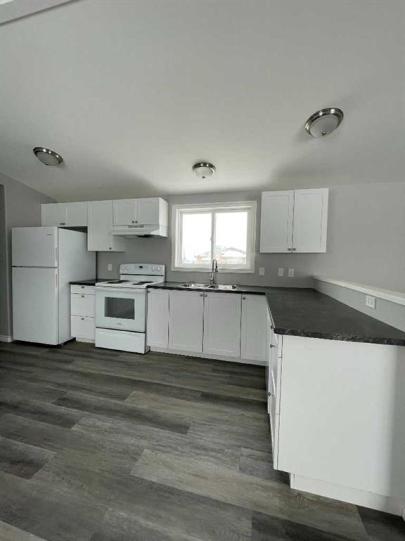 ABSOLUTLY STUNNING….. This fully has incurred extensive renovations both inside and out. New, new, and new. Vinyl siding, asphalt shingled roof, vinyl plank flooring, vaulted ceilings, newer appliances, Painted Gyproc walls, cabinets, countertops, all the plumbing and electrical panel is also part of the reno’s, furnace, baseboards, trims, doors. There are 2 good sized bedrooms and 4 pcs bathroom at one end of the home while you have complete privacy at the other end, this is where you will find the large master bedroom with walk-in closet along with a 4-pc ensuite. Located within walking distance too one of High Level’s Grocery Stores, not to mention other amenities. All this Nestled on a Double Lot and situated on a private area of the park, is where this GEM is hidden. It just doesn't get any better than this, So why wait any longer. This unit is "Move In Ready"