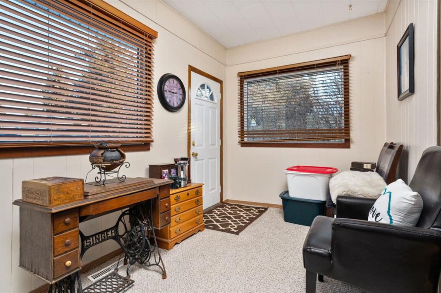 Welcome to this charming character home in the heart of Sedgwick! Step inside to a spacious living room featuring high ceilings and a cozy wood-burning fireplace, ideal for those relaxing evenings. The bright kitchen flows seamlessly into the attached dining area, offering plenty of space for gatherings as well as access to your large attached deck. Enjoy the convenience of a main-floor bedroom, along with a freshly repainted and updated bathroom completed in June 2025. Upstairs, you’ll find a very large bedroom that was originally two rooms and could easily be converted back with the addition of a wall. The basement includes laundry and a newer furnace installed in 2023. Outside, the property shines with a generously sized deck ideal for summer night gatherings, a double oversized insulated garage with a newer door (2021), and updated west siding and shingles completed in 2025. A wonderful opportunity to own a well-cared-for home full of warmth and character!