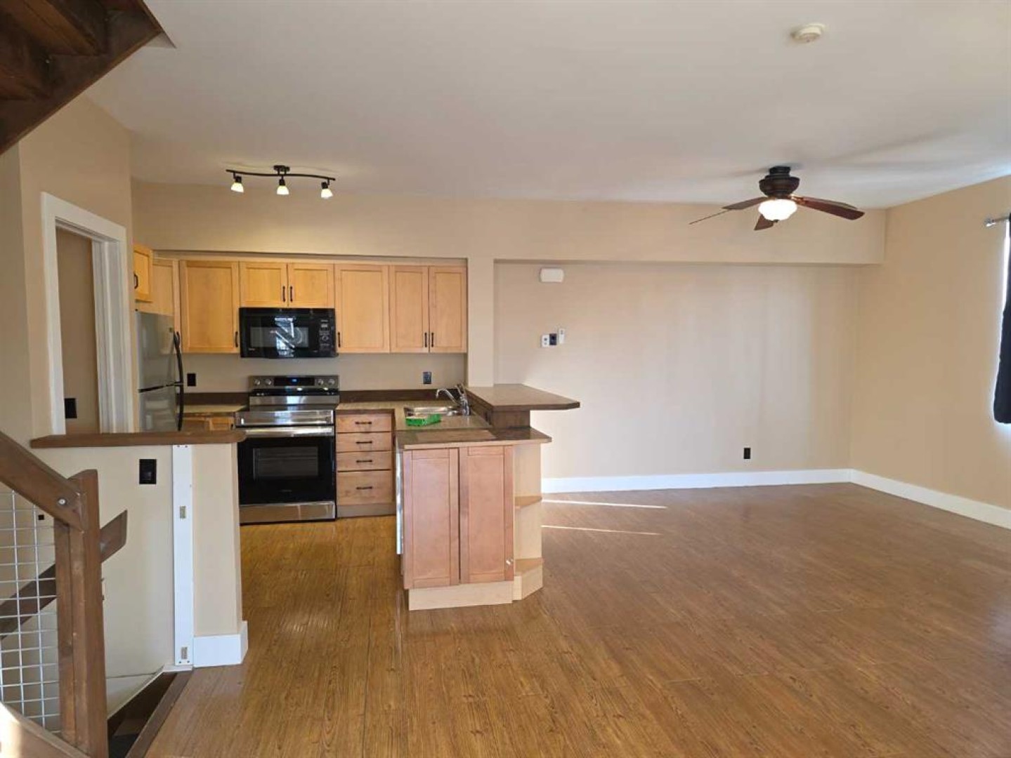 Step into a bright, beautifully designed home that blends comfort(A/C), style, and effortless living. Offering three spacious bedrooms—each with its own walk-in closet—two private balconies, and a thoughtful open-concept layout, this property delivers both function and charm. The main floor welcomes you with a modern kitchen featuring an eating bar and sleek stainless steel appliances. Just off the kitchen sits a generous dining area perfect for gatherings, a convenient 2-piece bath, and a warm, inviting living room complete with a cozy nook and access to your first balcony. Upstairs, you’ll find two oversized bedrooms, each boasting walk-in closets. The primary bedroom includes a charming nook and its own balcony—an ideal spot for morning coffee. A well positioned laundry room with cabinetry and folding counter adds everyday convenience, along with a 4-piece bathroom. The fully finished basement is bright and surprisingly spacious, offering a welcoming family area filled with natural light. A large third bedroom with a walk-in closet and its own 4-piece ensuite creates a perfect private retreat for guests or older family members. Outside, enjoy a cute, fenced yard—ideal for plants, or simply relaxing outdoors. Dedicated parking adds to the ease of living. Located just steps from Main Street shopping and close to all local schools, this home sits in a prime, walkable neighborhood. With low-maintenance living and exceptionally affordable condo fees, it’s an excellent choice for first-time buyers, downsizers, or investors looking for a smart, stress-free property.