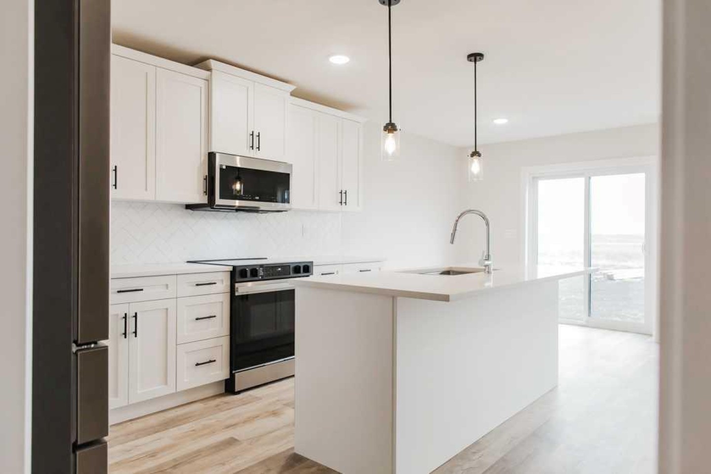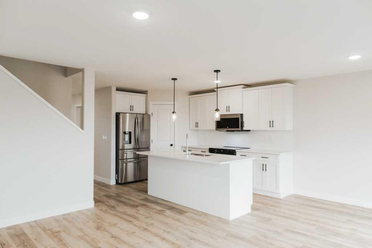 Welcome to the Evelyn Plan—an exciting opportunity for first-time buyers to step into homeownership with confidence. This thoughtfully designed ½ duplex offers over 1,372 sq ft of well-planned living space across two levels, featuring 3 bedrooms, 3 full 4-piece bathrooms, an office nook, and the convenience of upstairs laundry. The bright, open-concept main floor is perfect for everyday living and entertaining, highlighted by an island kitchen with quartz countertops, real wood soft-close cabinets and drawers, upgraded stainless steel appliances, and an oversized walk-in pantry for exceptional storage. Built with efficiency and affordability in mind, this home includes LED lighting, Low-E argon-filled windows, and hot water on demand to help keep monthly utility costs low. Enjoy an extra-large backyard backing onto an easement for added privacy and outdoor space. Located in Bridgewater in Clairmont, a growing family-friendly community with parks, trails, a K–8 school, spray park, and skate park nearby, plus the added bonus of county property taxes approximately 48% lower than Grande Prairie—saving homeowners thousands every year. Currently under construction with an estimated completion of mid-May 2026, this is a fantastic chance to plan ahead and secure a brand-new home at an affordable price point. (Photos are samples from a similar plan and specifications.)
